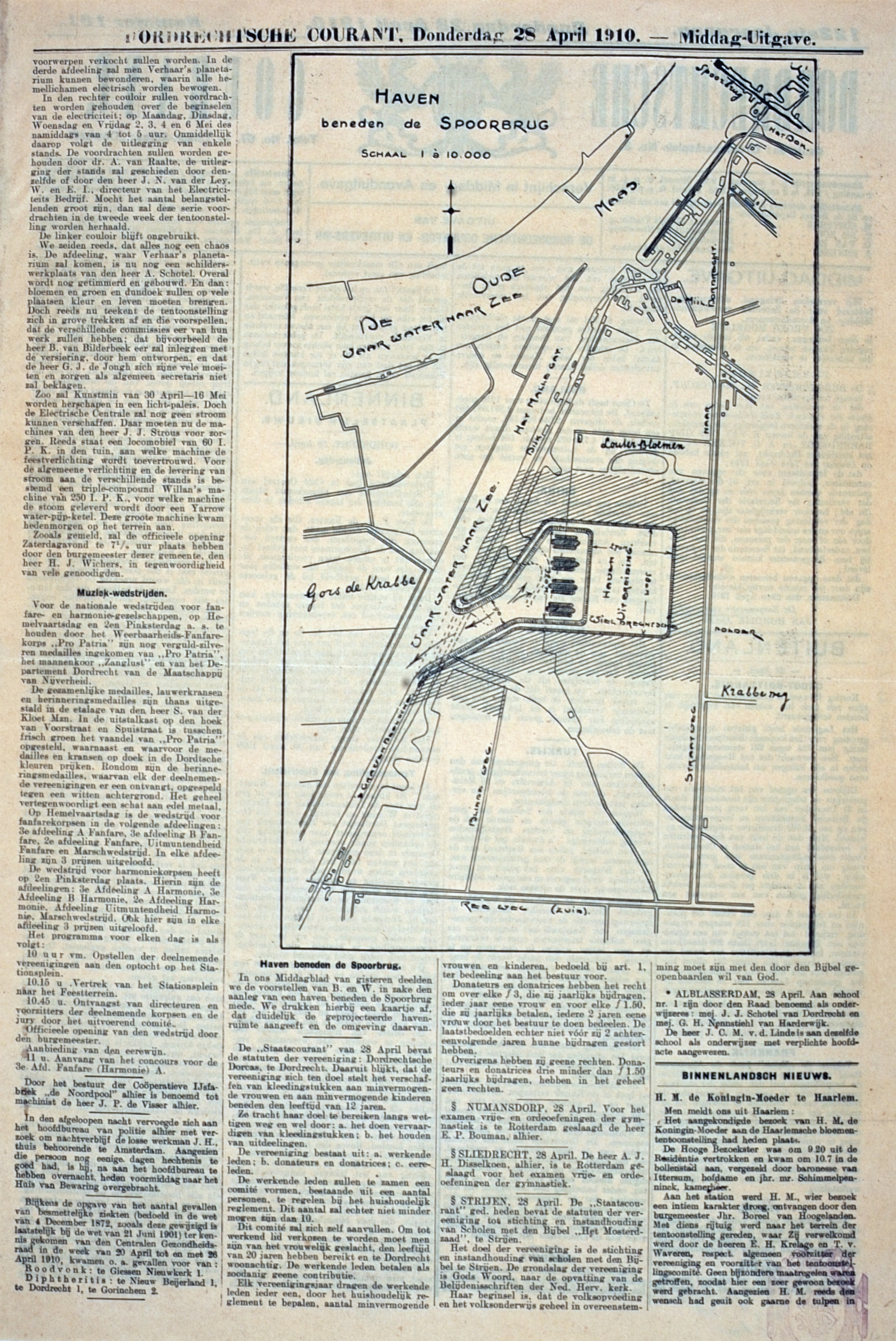 - In: Dordrechtsche Courant van 28 april 1910, middagblad; dit door Burgemeester en Wethouders voorgestelde plan is aangenomen in de Raadszitting van 11 oktober 1910.; afmetingen: Hg. 31.8, br. 18.5 c.