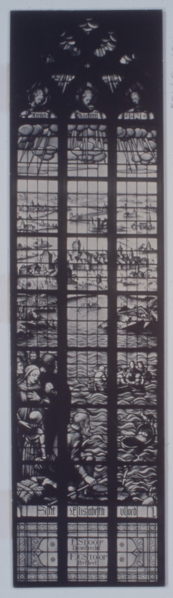 Grote Kerk, gebrandschilderd raam, 1906, voorstellend de St. Elisabethsvloed van 1421