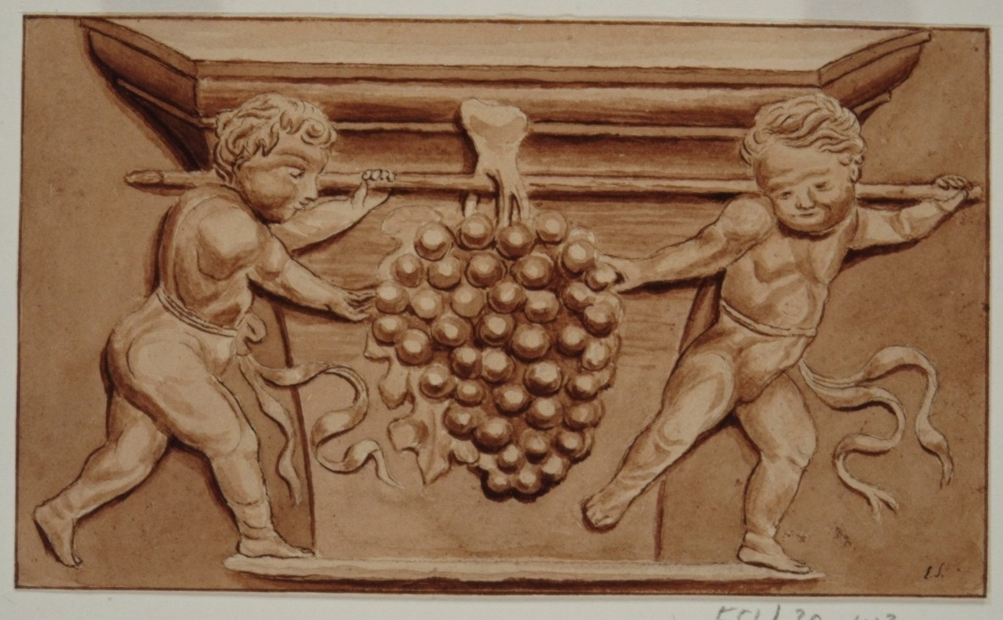 - Misericorde onder een koorstoelzitting in de Grote Kerk voorstellende de terugkeer van de verspieders uit het beloofde land