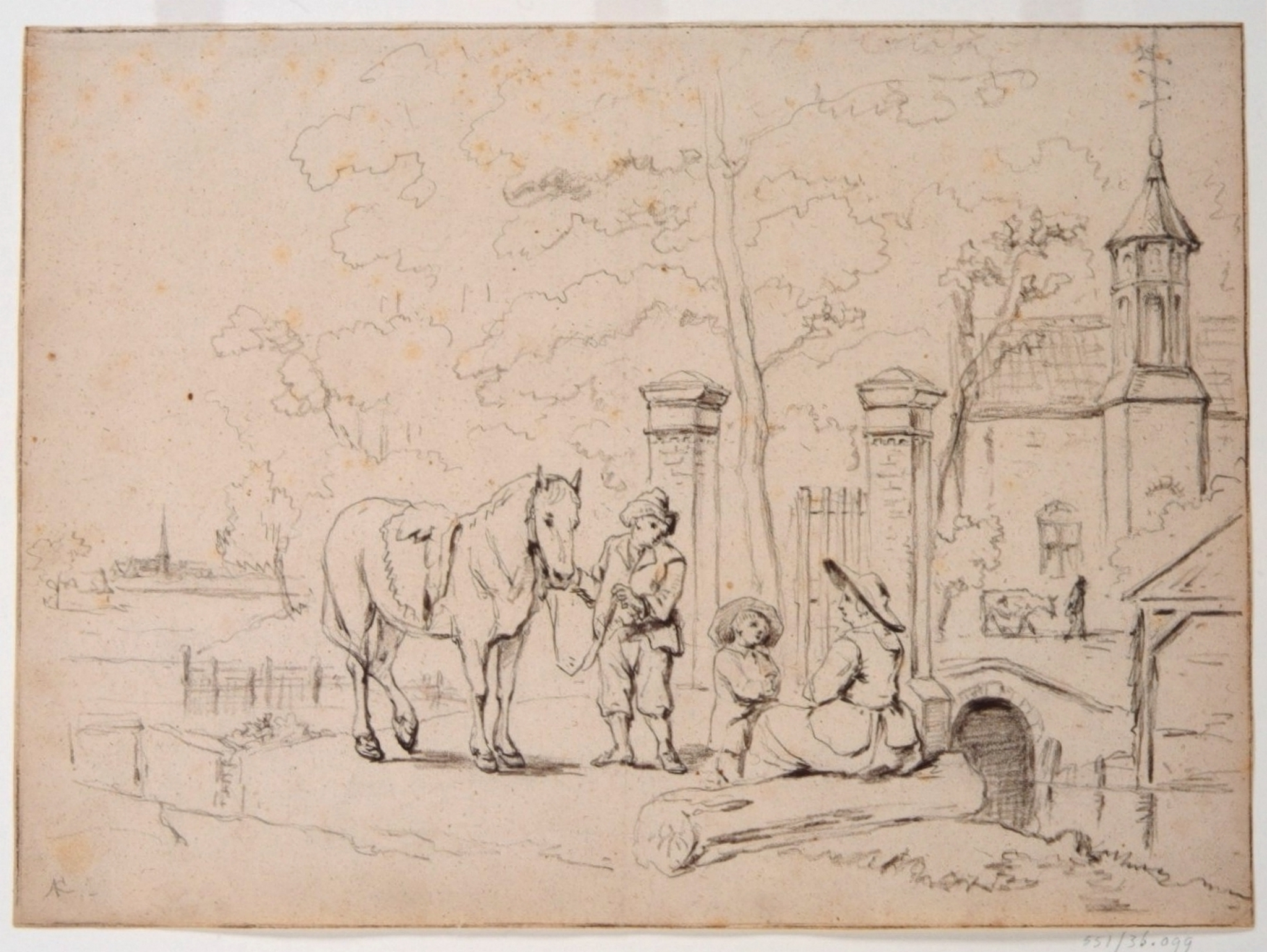- hxb: 33 x 45 cm. Misschien copie naar Cuyp. Het torentje komt overeen met dat van hofstede Crabbehoff. (Zie nrs. DI 1993 en 1994) en ook de plaatsing van het gebouw ten opzichte van het hek komt overeen; het huis Crabbehoff is breder dan hier is afgebeeld. Vermoedelijk heeft Crabbehoff slechts het motief gevormd voor een gefantaseerde voorstelling.