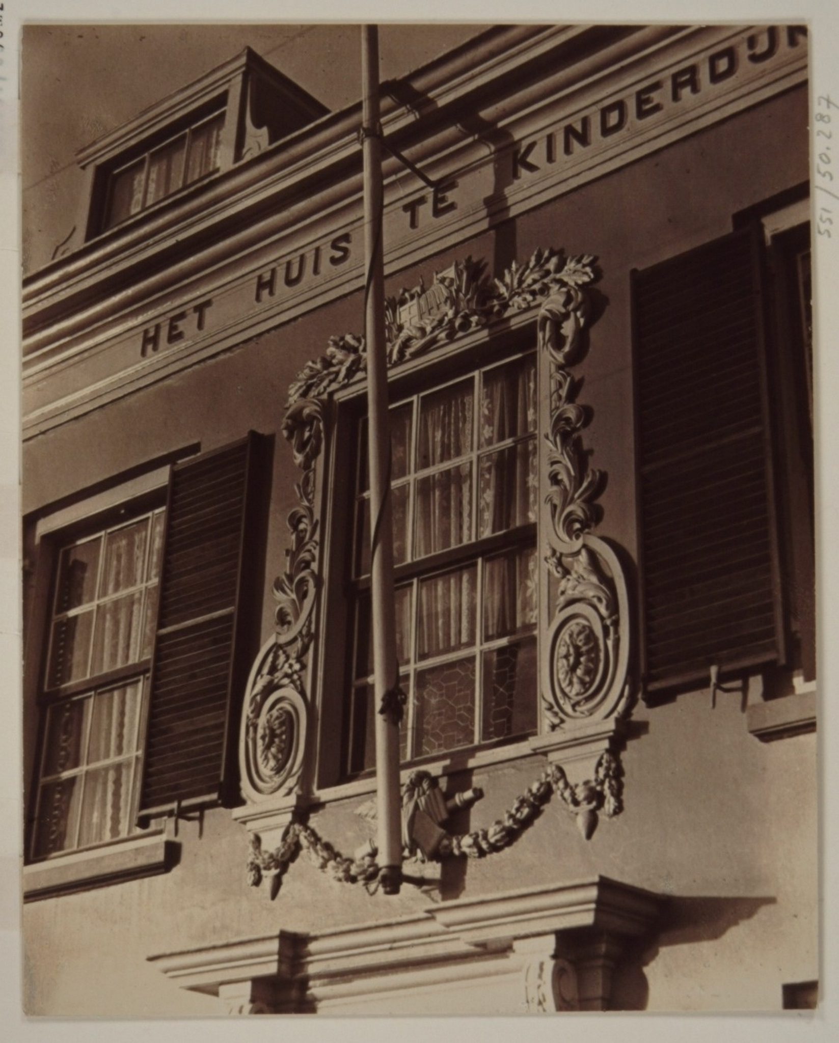 Het Huis te Kinderdijk; 18e eeuws. Boven het raam een gebeeldhouwde voorstelling van …