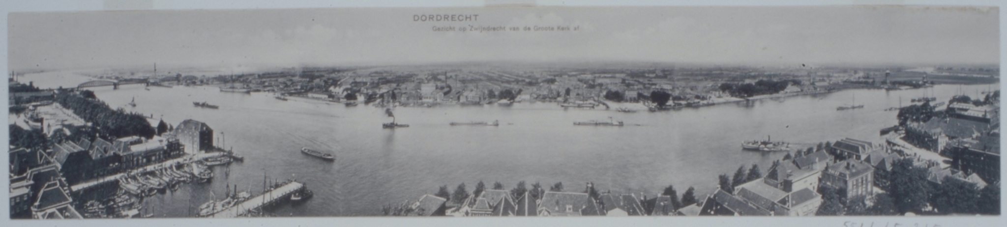 - Panorama vanaf de Grotekerkstoren op de Oude Maas van de Noord tot aan de spoorwegbrug en op het dorp Zwijndrecht.