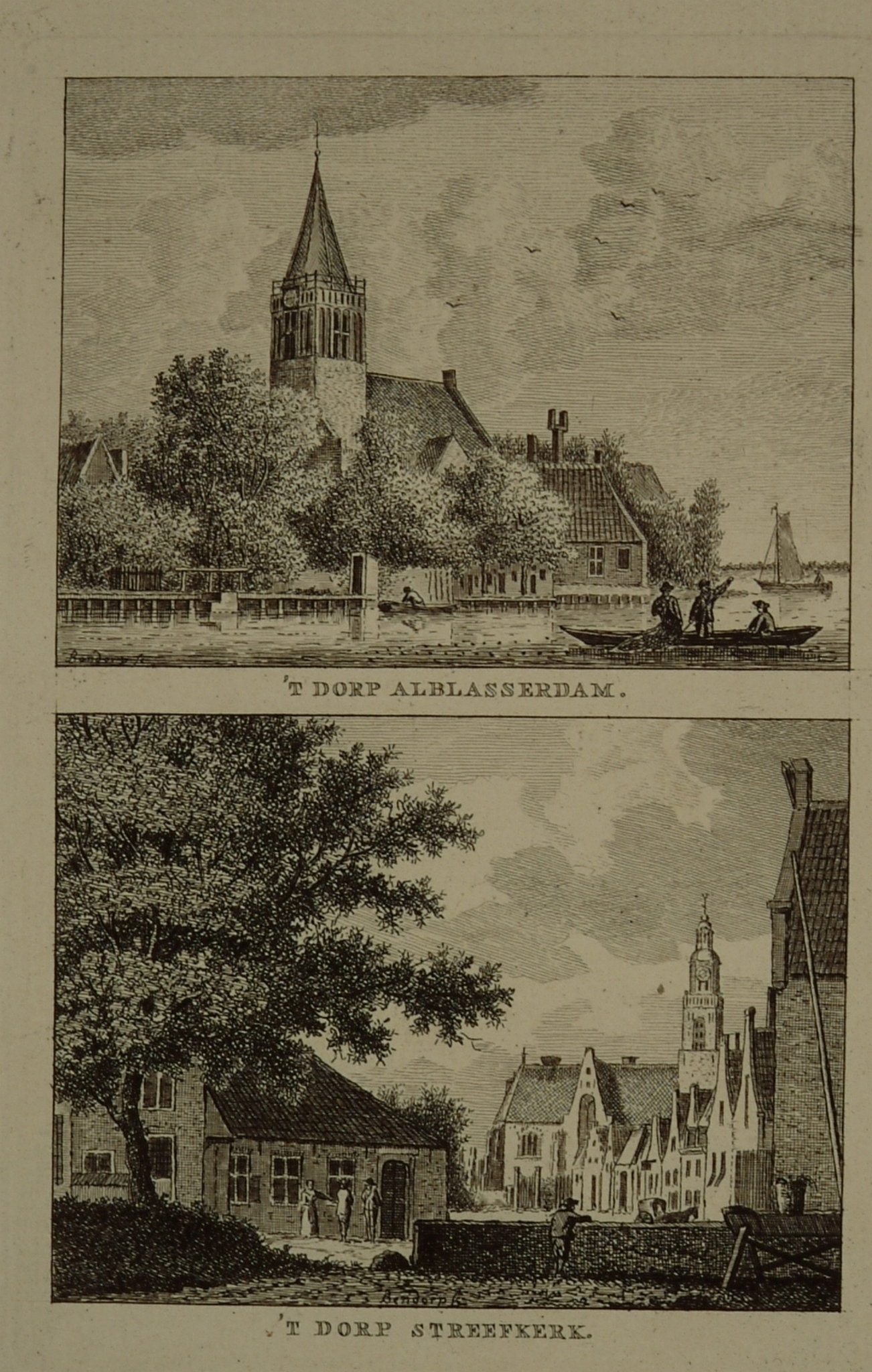 - Het dorp Streefkerk, gezicht in het dorp en op de kerk, met op hetzelfde blad een gezicht van Alblasserdam, ca. 1784