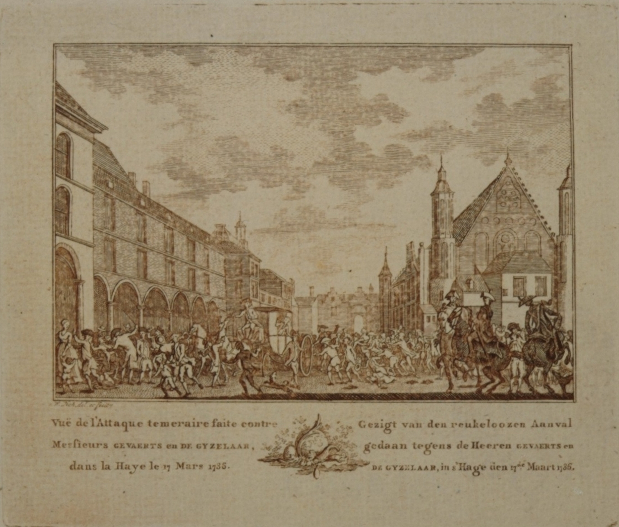 Aanslag op Dordtse Gedeputeerden in Den Haag, 17 maart 1786, gezien vanaf de …