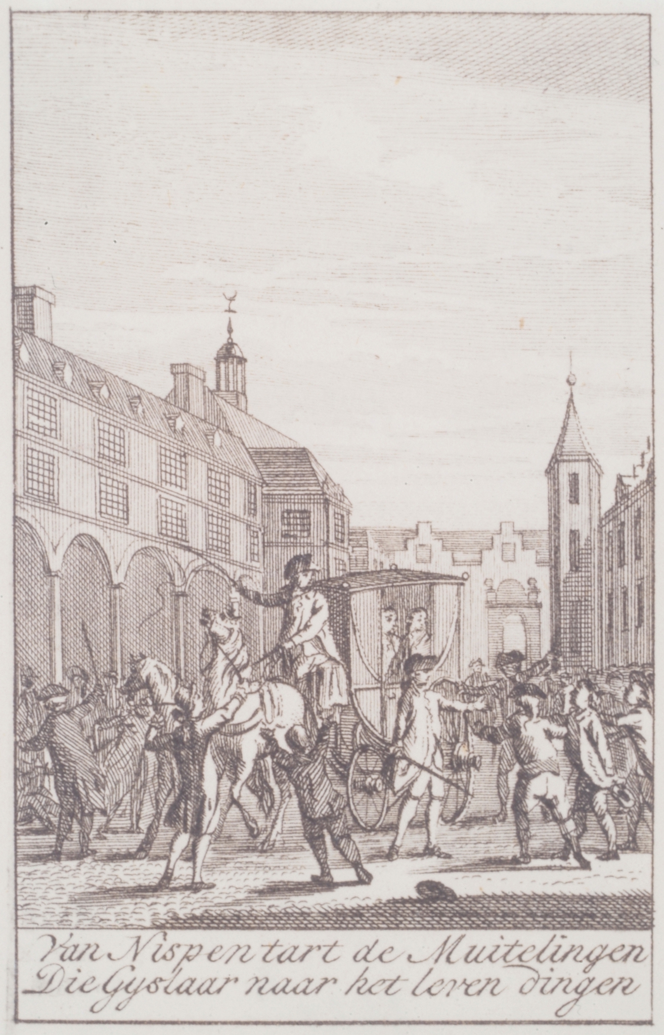 - hxb: 8 x 5 cm. Het onderschrift luidt: Van Nispen tart de muitelingen - Die Gijselaar naar het leven dingen.