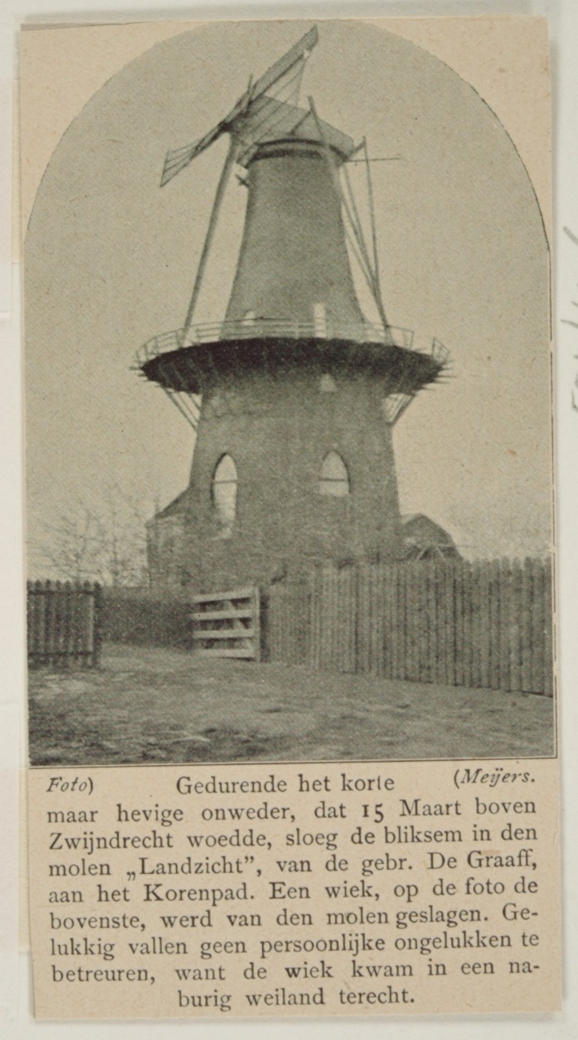 - Molen Landzicht van de gebroeders De Graaf na blikseminslag tijdens onweer, waarbij een van de wieken werd afgeslagen en in een weiland terecht kwam.