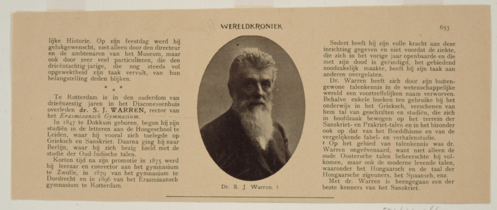 - hxb: 8 x 6 cm. Uit: De Wereldkroniek, 8 januari 1910, nr. 41. Geboren in Dokkum 1847 en overleden in Rotterdam 1911. Groot kenner van Grieks en Oosterse talen. Conrector aan het gymnasium te Zwolle. Van 1879-1897 rector aan het Dordtse gymnasium, daarna aan het Erasmiaans gymnasium te Rotterdam.
