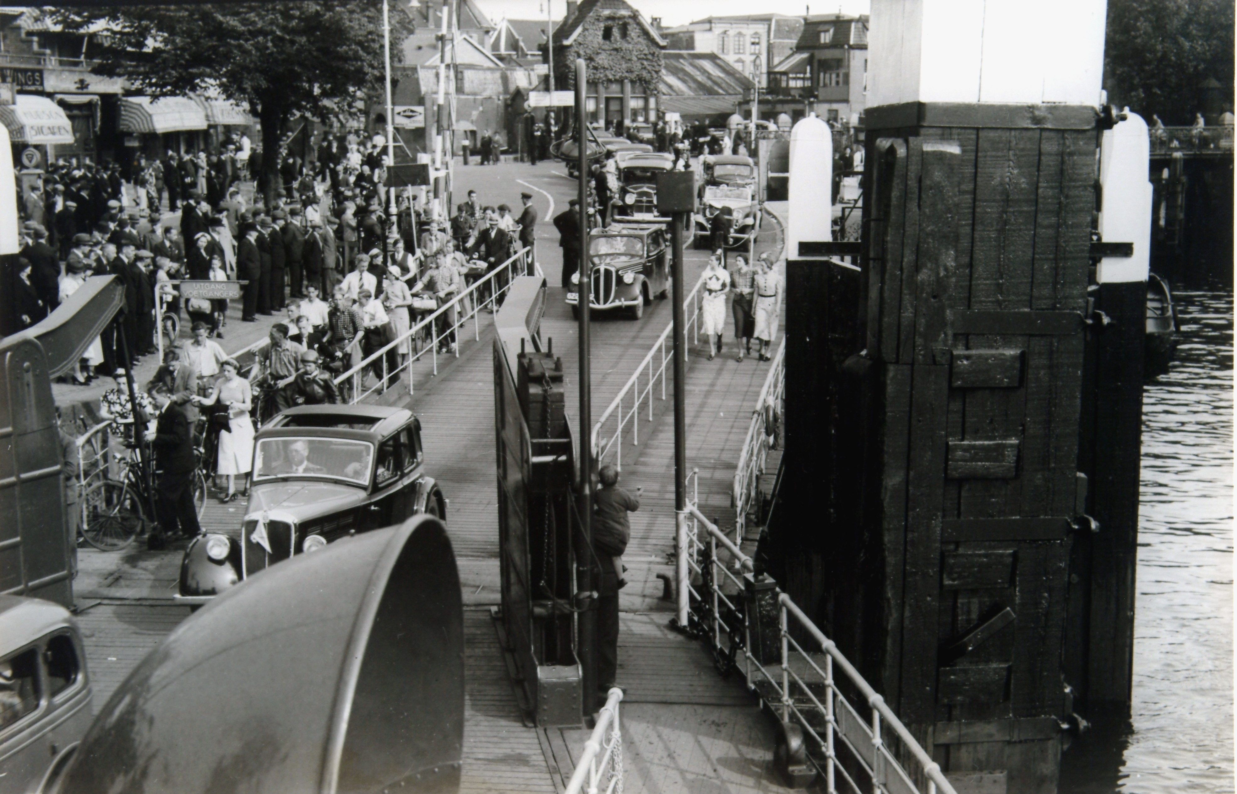 - Het veer naar Zwijndrecht aan het Blauwpoortsplein tijdens het pinksterweekend van 1938