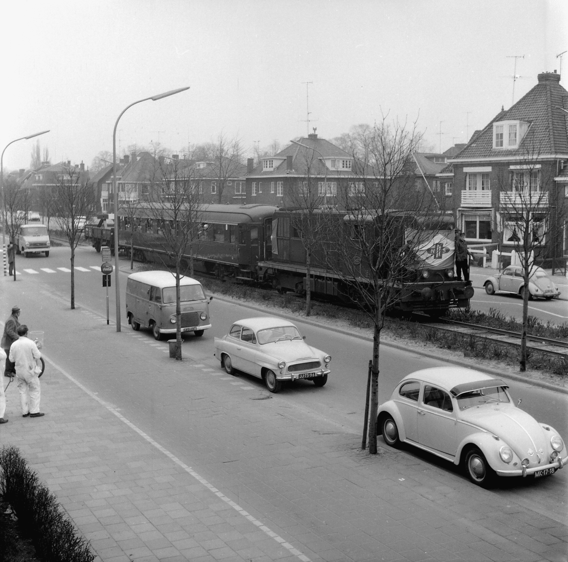 Op deze foto uit 1966 is de NS-loc uit de serie 2400/2500 te zien. Geen heel sterke loc - 850 pk - maar wel een erg mooie vormgeving. Aanvankelijk in bruin uitgevoerd (heel in het begin ook blauw) maar in de jaren 70 van gele kleur voorzien helaas.
