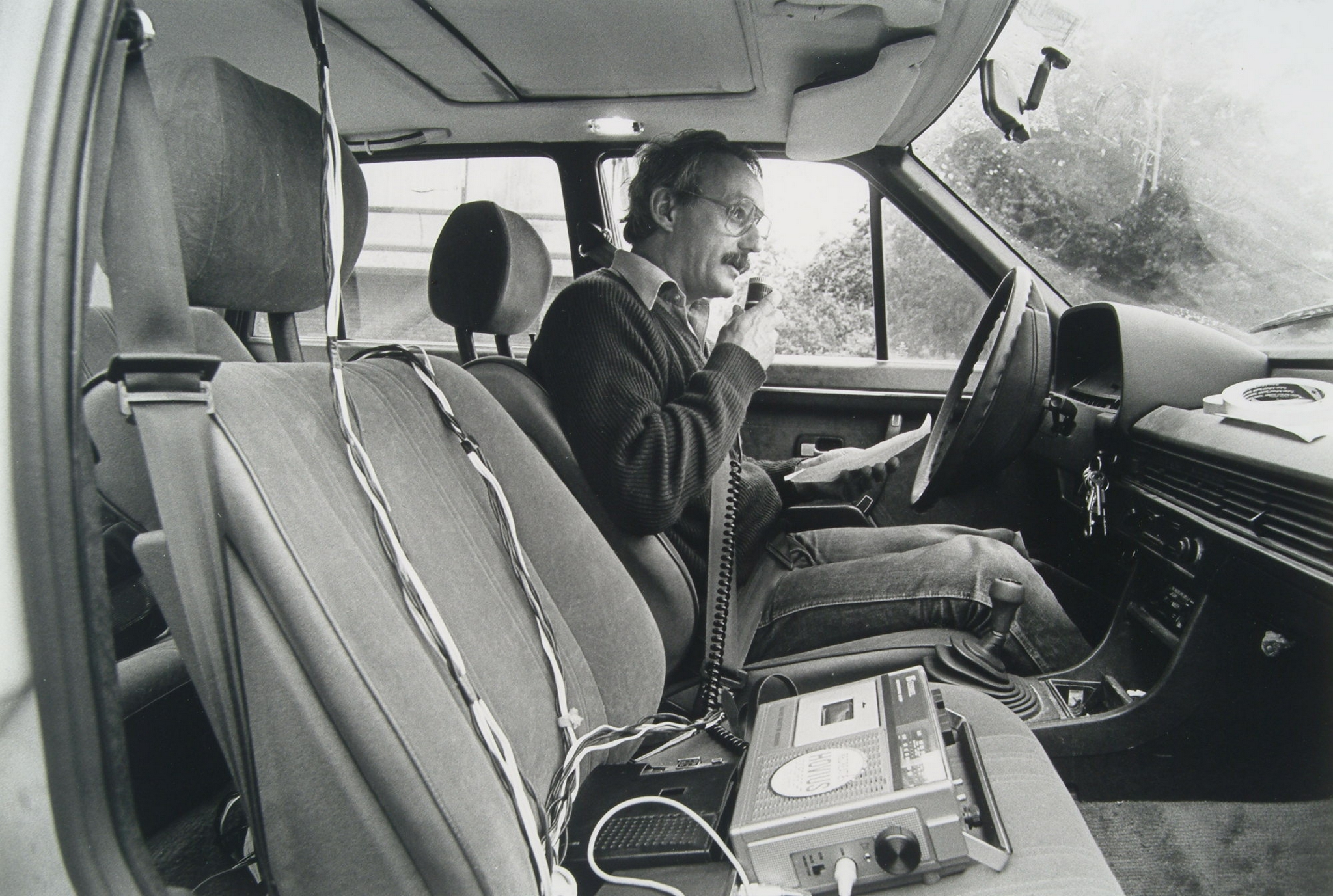 - Gemeenteraadsverkiezingen mei 1982. Gerard Hovius in de CDA geluidswagen tijdens een rit door de wijk Crabbehof