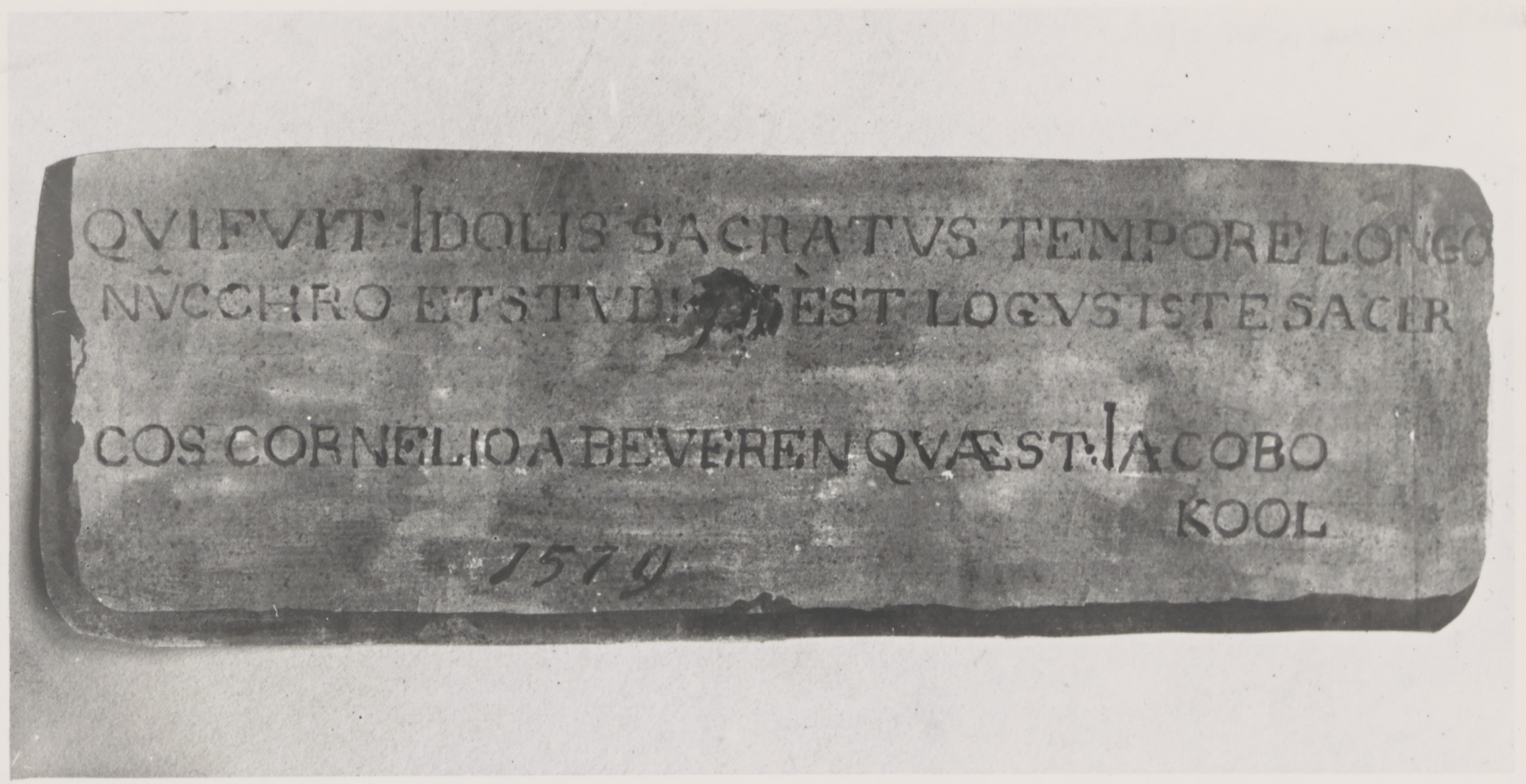 - Gevelsteen van de eerste Latijnse school aan de Augustijnenkamp.
