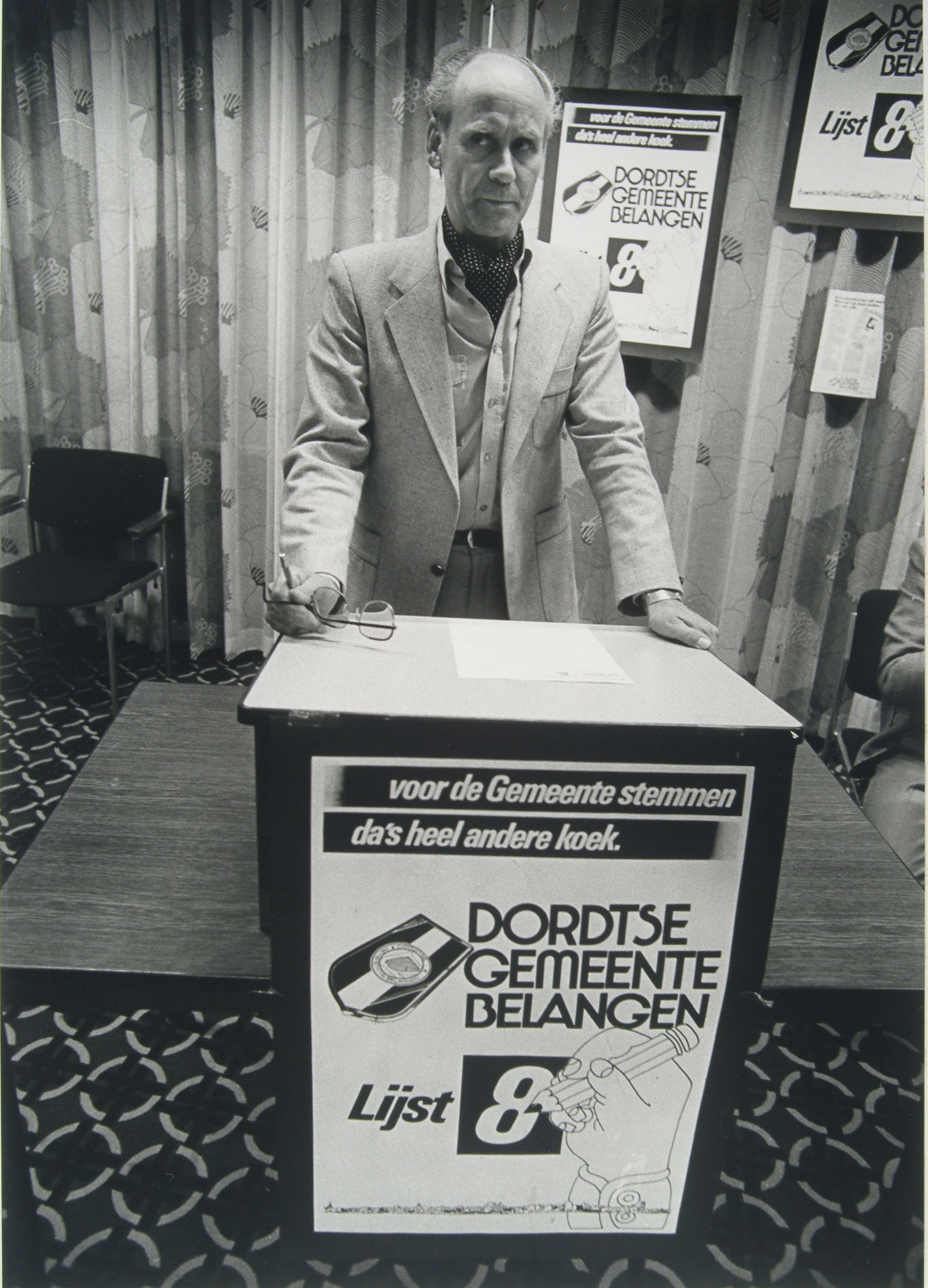 Gemeenteraadsverkiezingen mei 1982. Simon de Pee, lijsttrekker van de Dordtse …