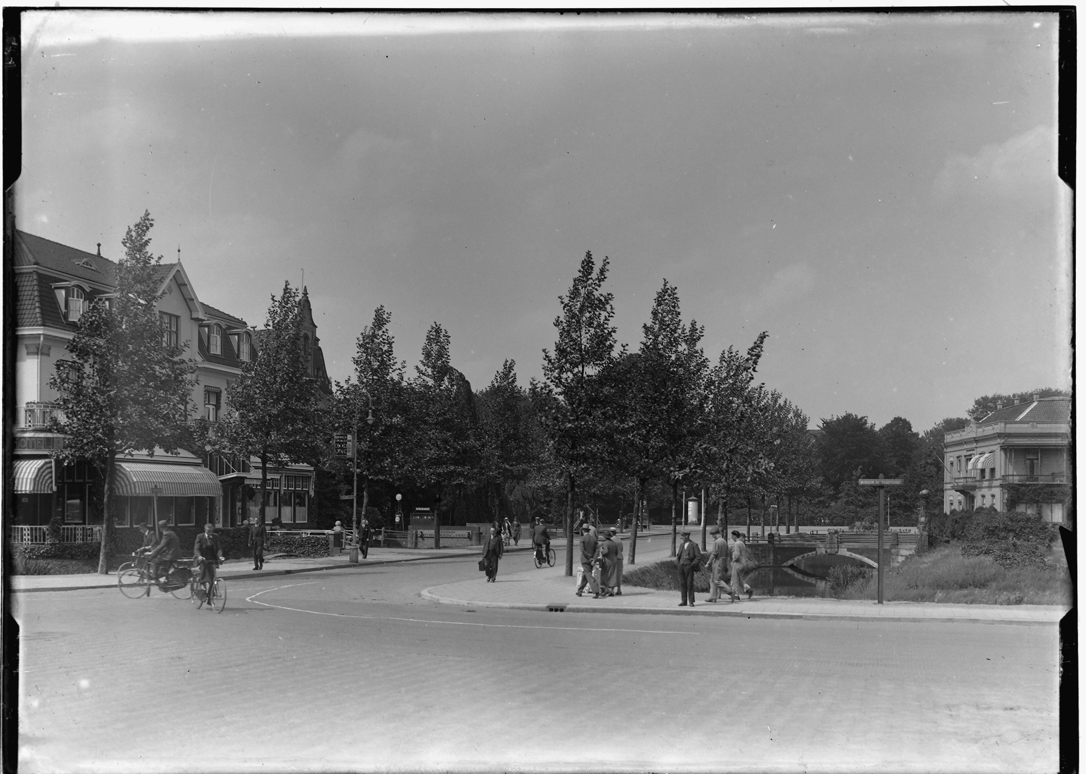 - Hoek Burgemeester de Raadtsingel/Stationsweg. Rechts staat Huize St. Anna, links Hotel Ponsen.