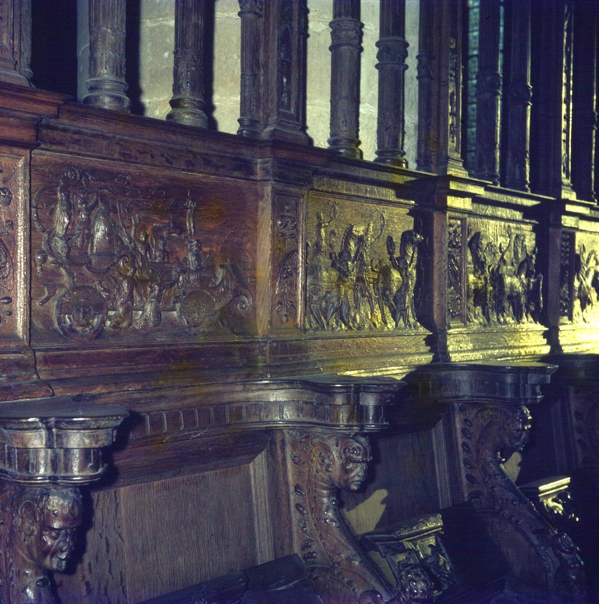 Banken in houtsnijwerk in de Grote Kerk te Dordrecht.