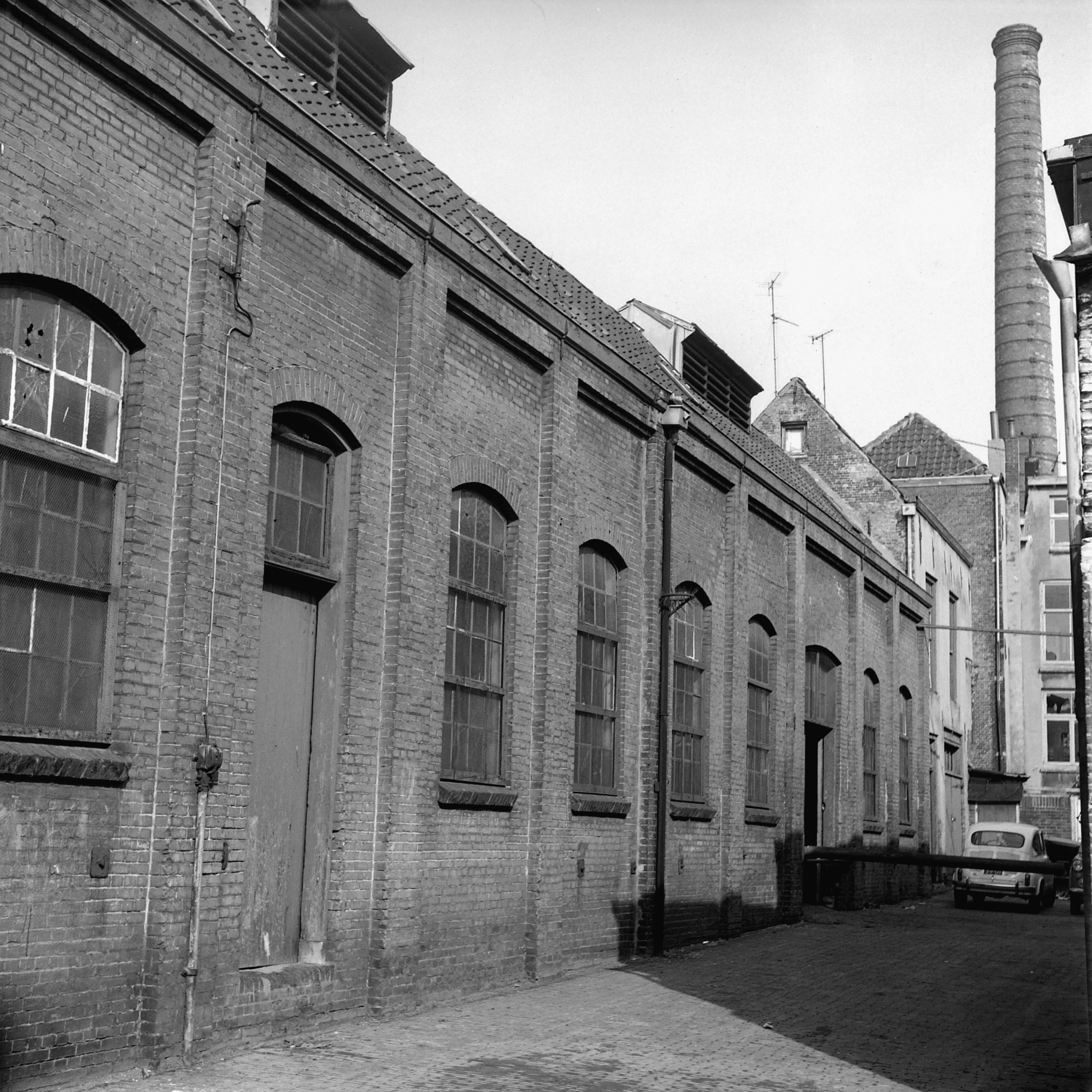 - Schotsetuin richting de Riedijk met op de achtergrond de schoorsteen van de gasfabriek