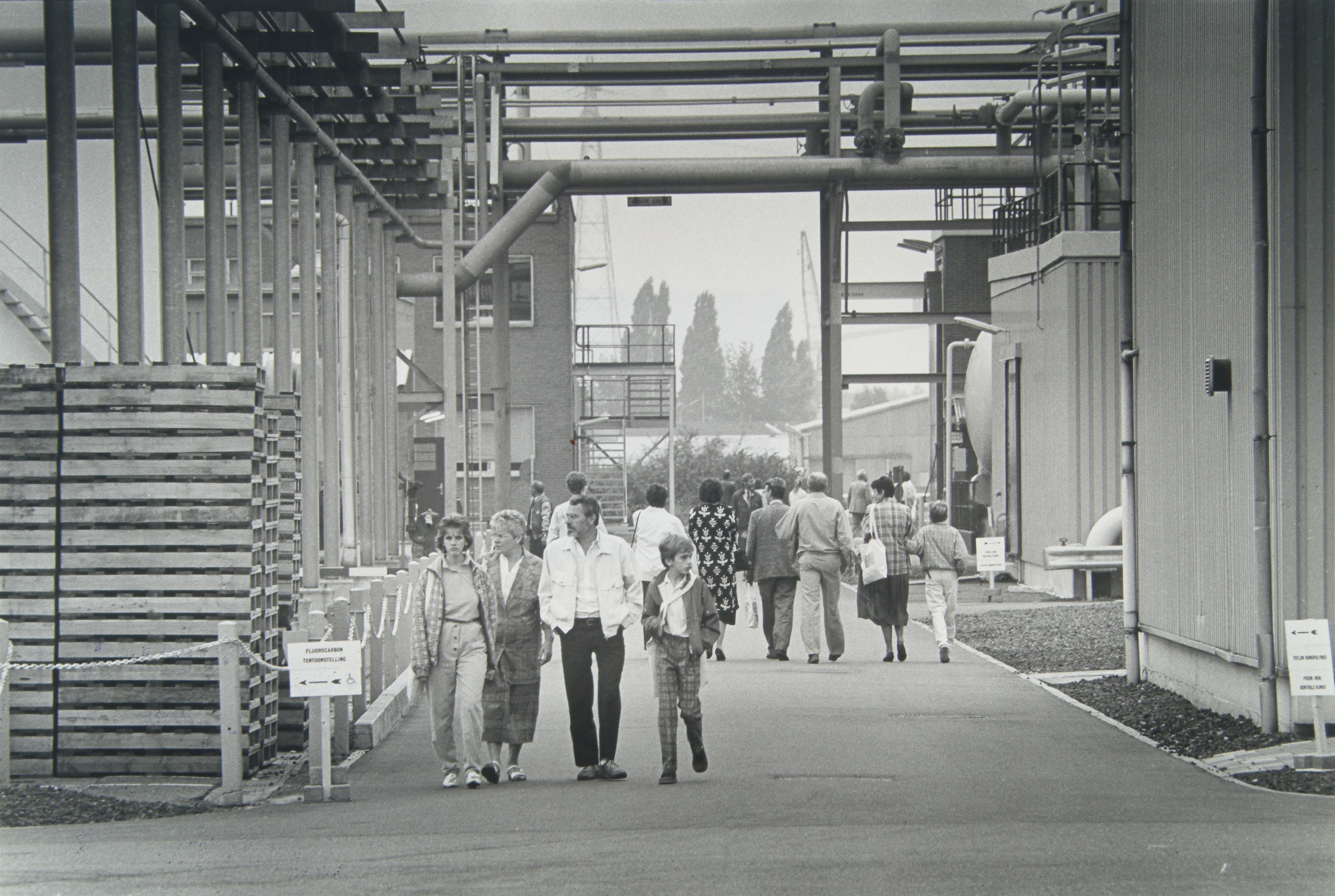 - Bezoekers op het fabrieksterrein van de chemiefabriek Dupont de Nemours aan de Baanhoekweg tijdens een openhuisdag