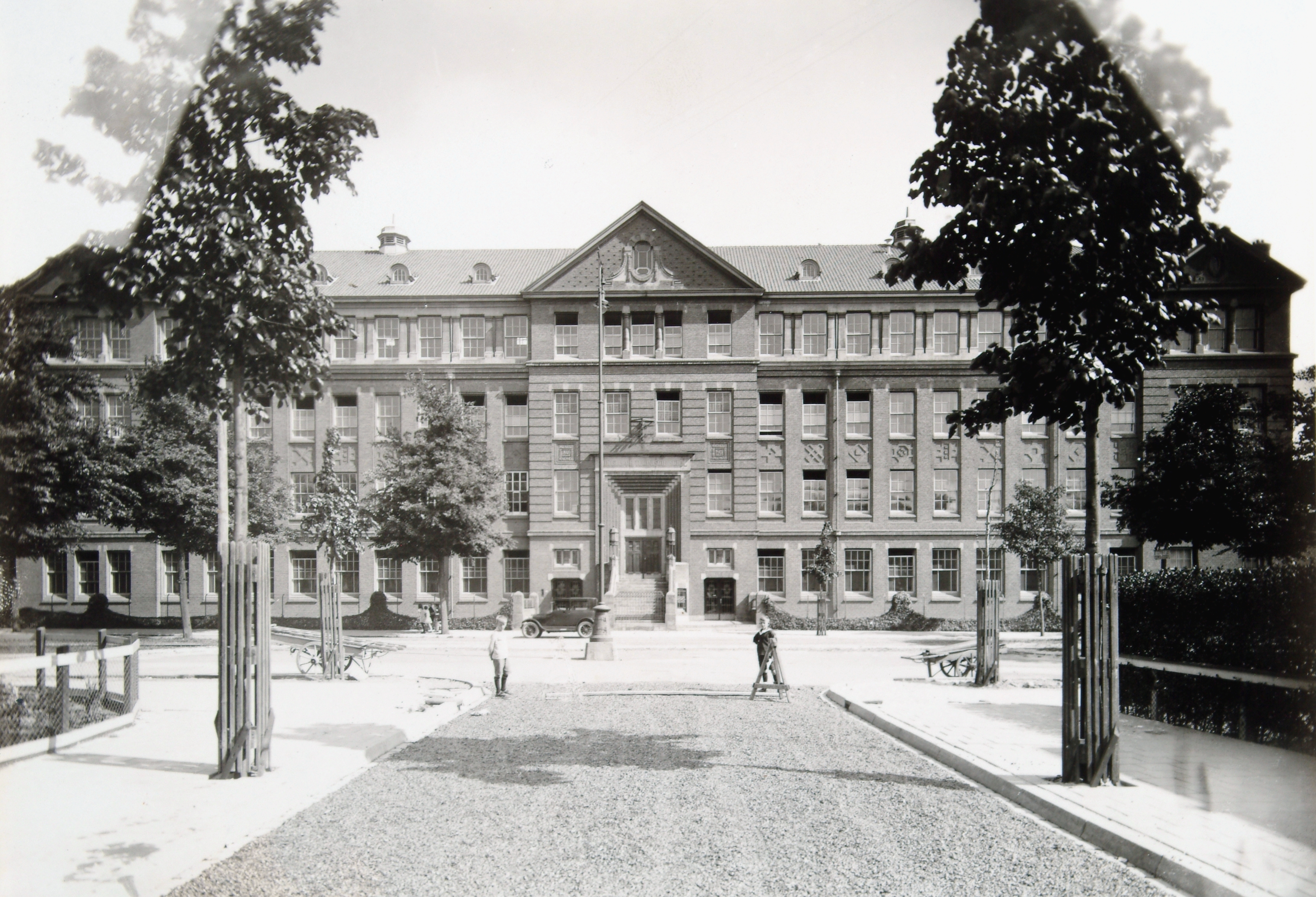 De M.T.S. aan de Oranjelaan, gezien vanuit de Gevaertsweg.