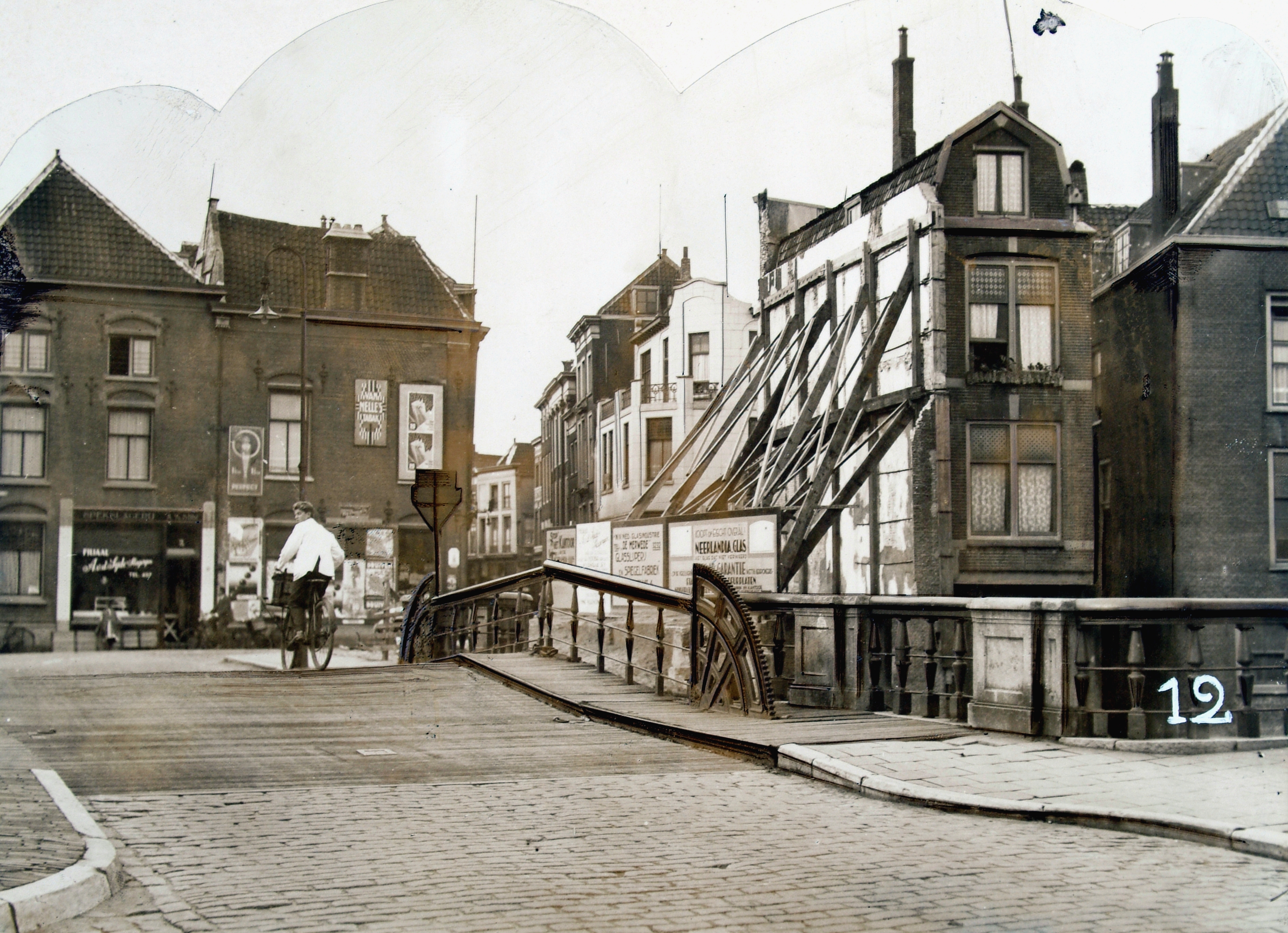 - bruggen fietsers gevelreclame kruidenierswinkels reclameborden