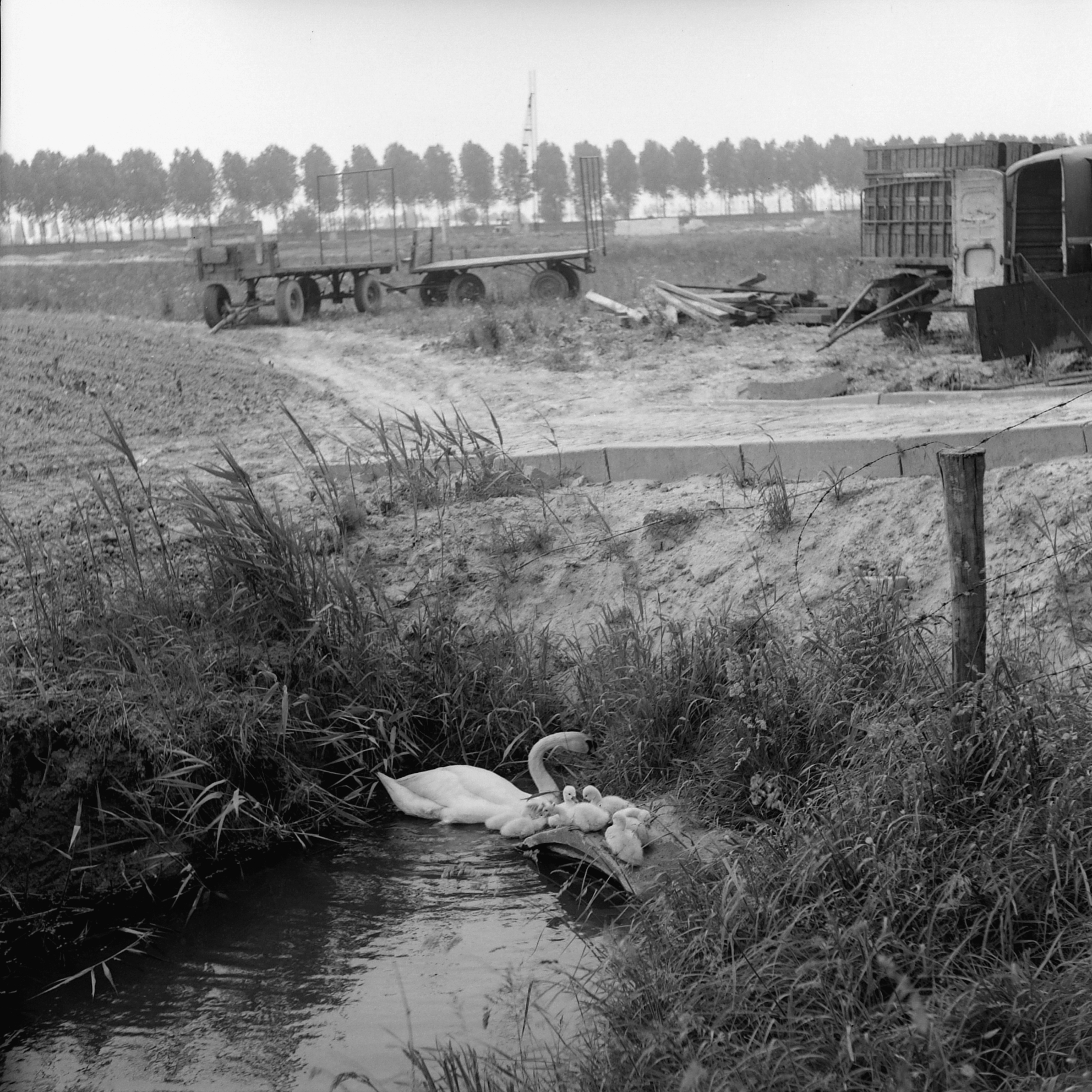 - Zwaan met jonge zwaantjes op de Oudendijk