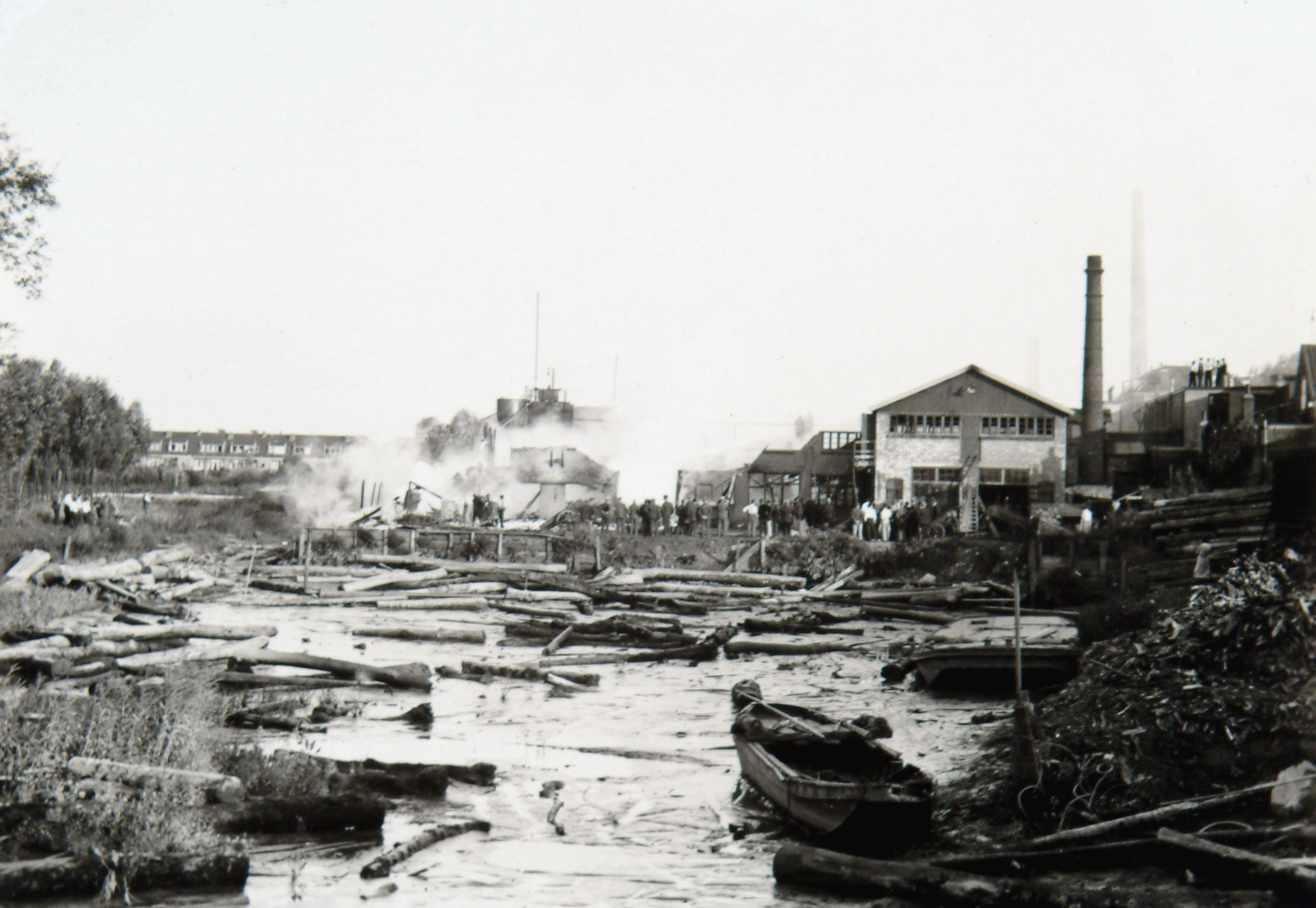 - Brand in timmerfabriek Bouman aan de Weeskinderendijk ter hoogte van de Straatweg. Op de voorgrond ligt een balkengat langs de 's-Gravendeelsedijk.