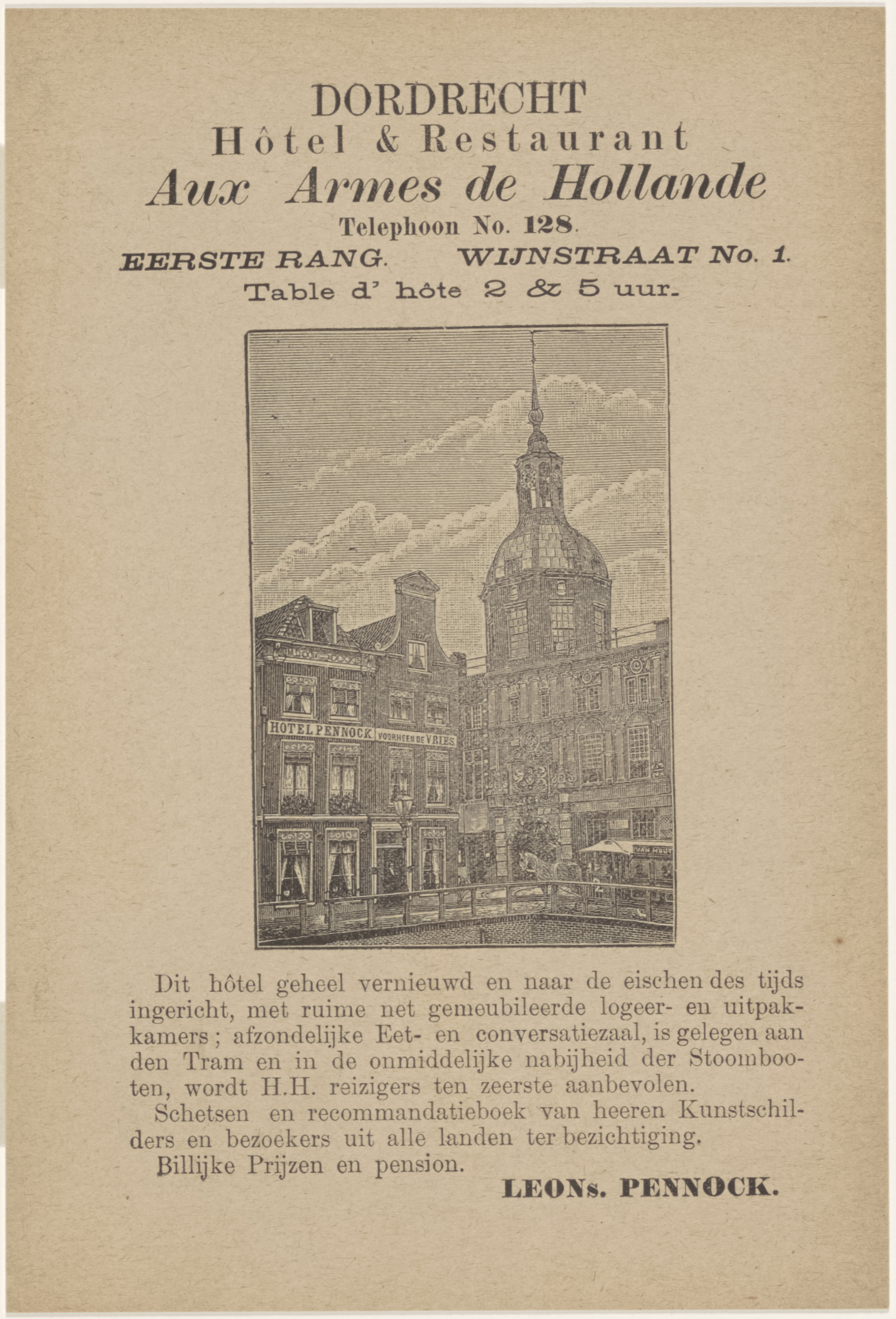 - Reclame-uiting van hotel-restaurant Aux Armes de Hollande.