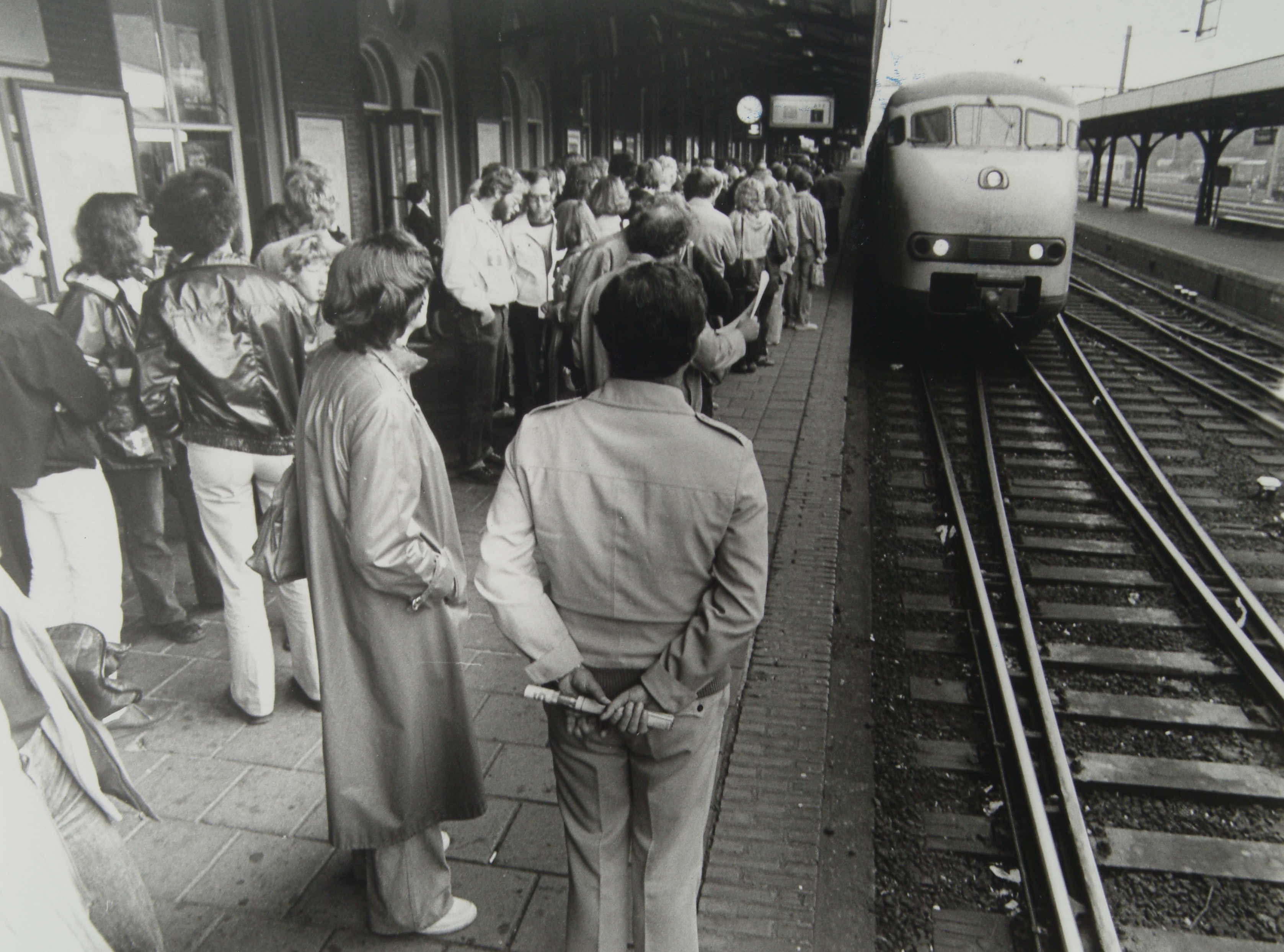 - Passagiers wachten op de trein op perron 1 van station Dordrecht