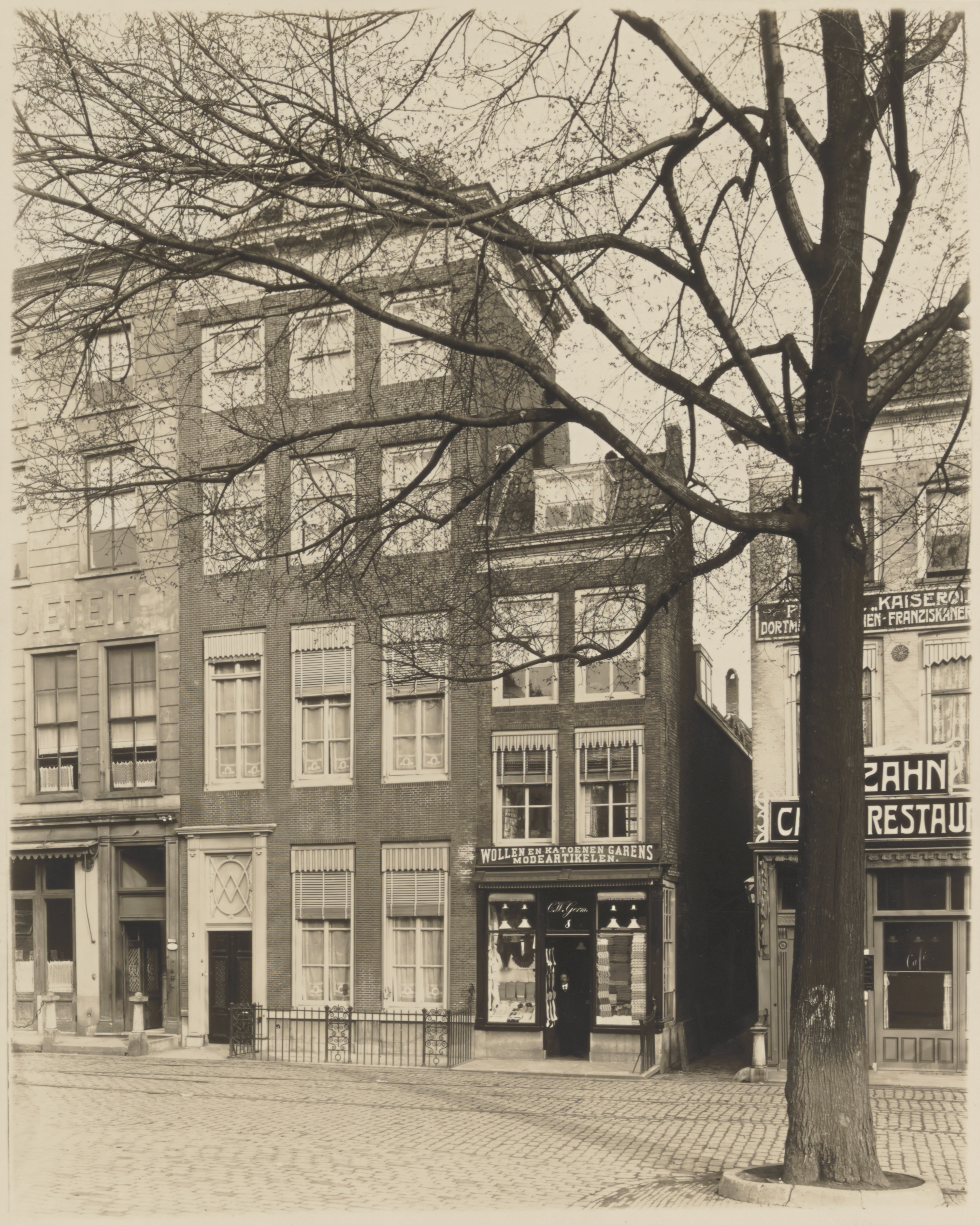 Café-restaurant Zahn op de Groenmarkt. hoek Tolbrugstraat Waterzijde, vanaf het Scheffersplein gezien.