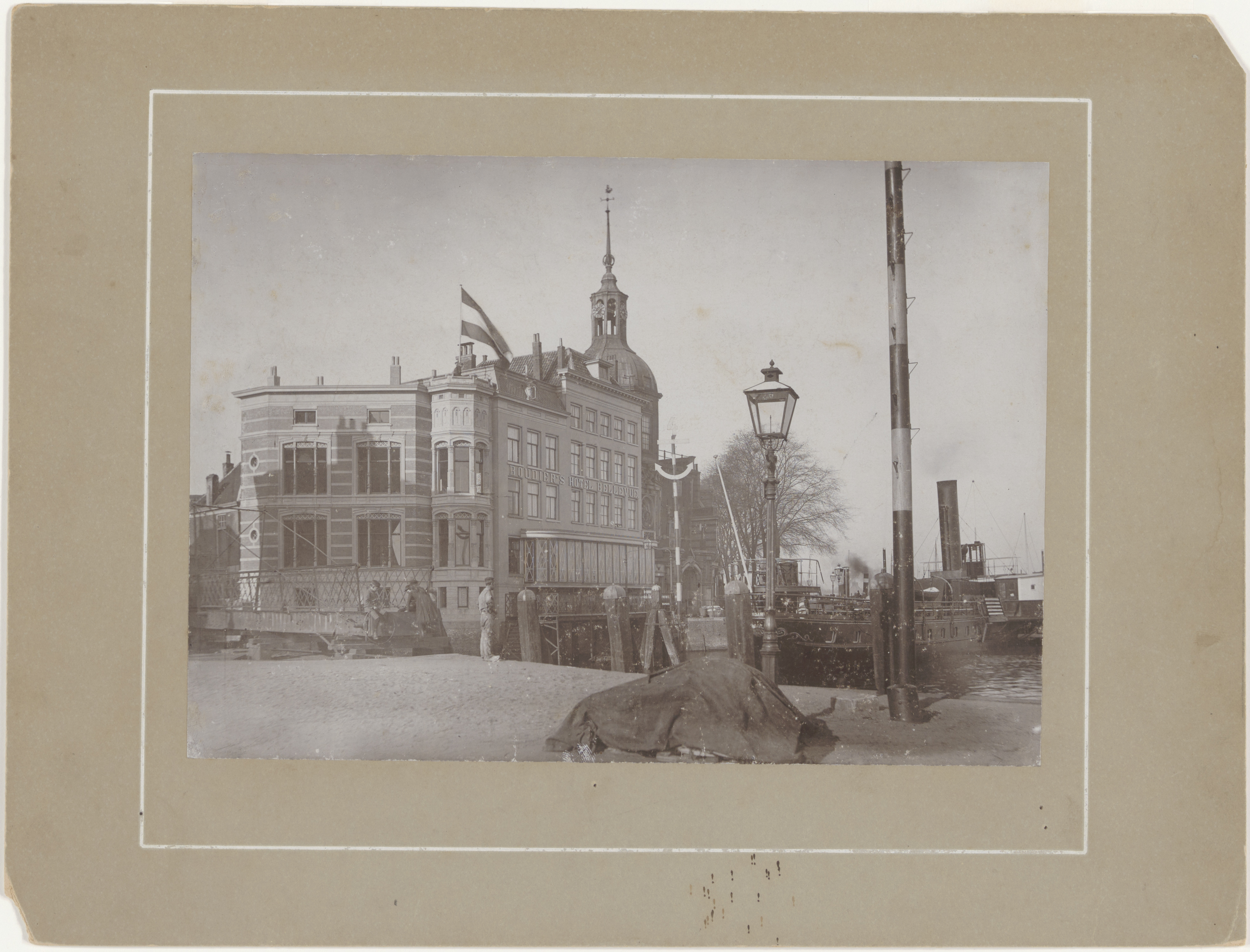 Het Groothoofd met hotel Bellevue en de (opengedraaide) Kippenbrug over de monding van …