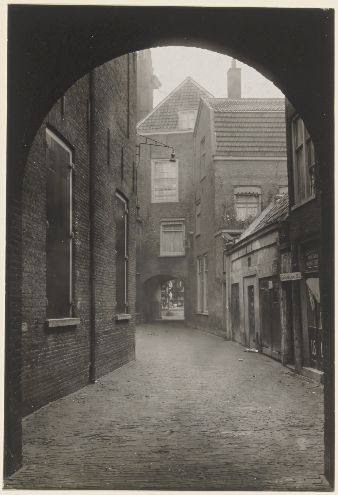 Gezicht in de doorgang van het Hof naast de Augustijnenkerk naar de Voorstraat.