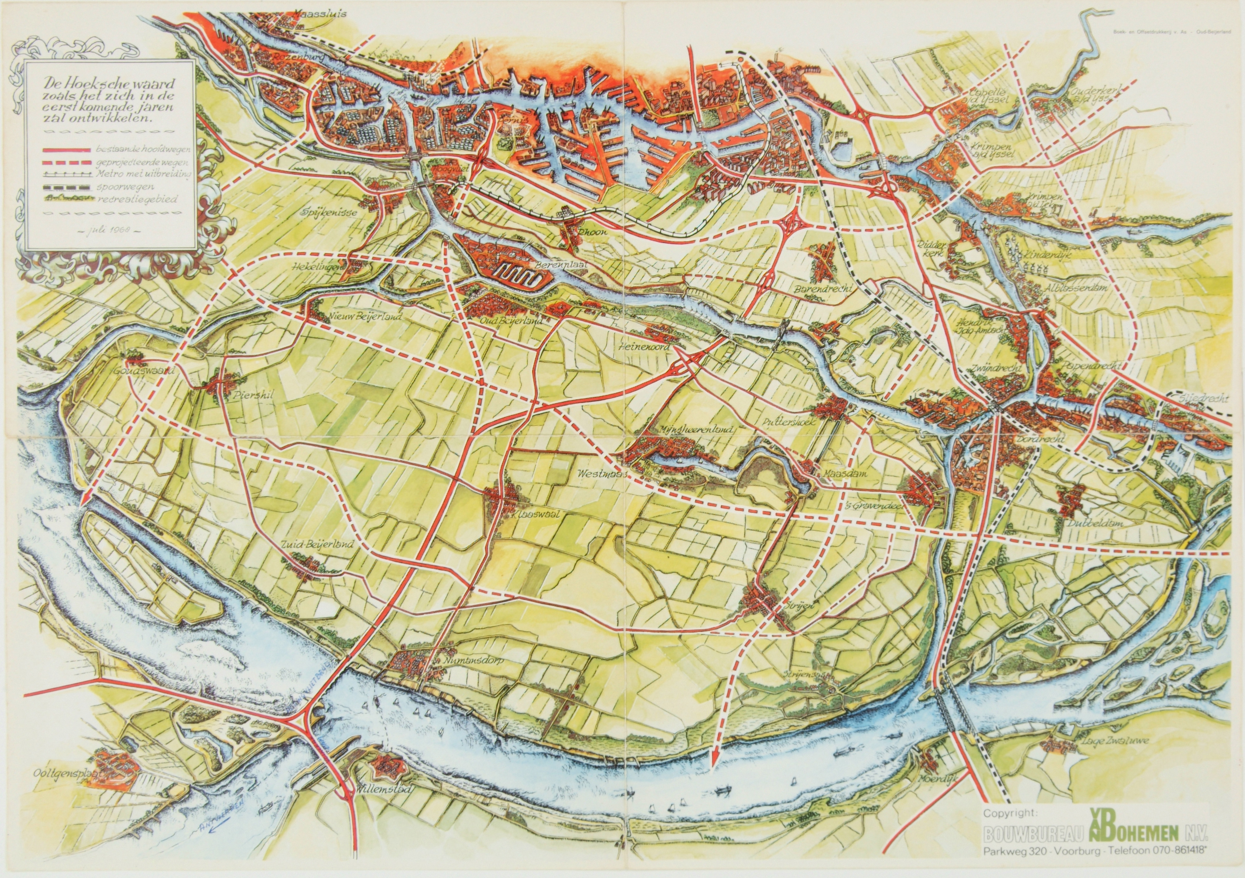 - Kaart van de Hoeksche Waard en de eilanden van IJsselmonde en Dordrecht met aangegeven de te verwachten infrastructurele ontwikkelingen.