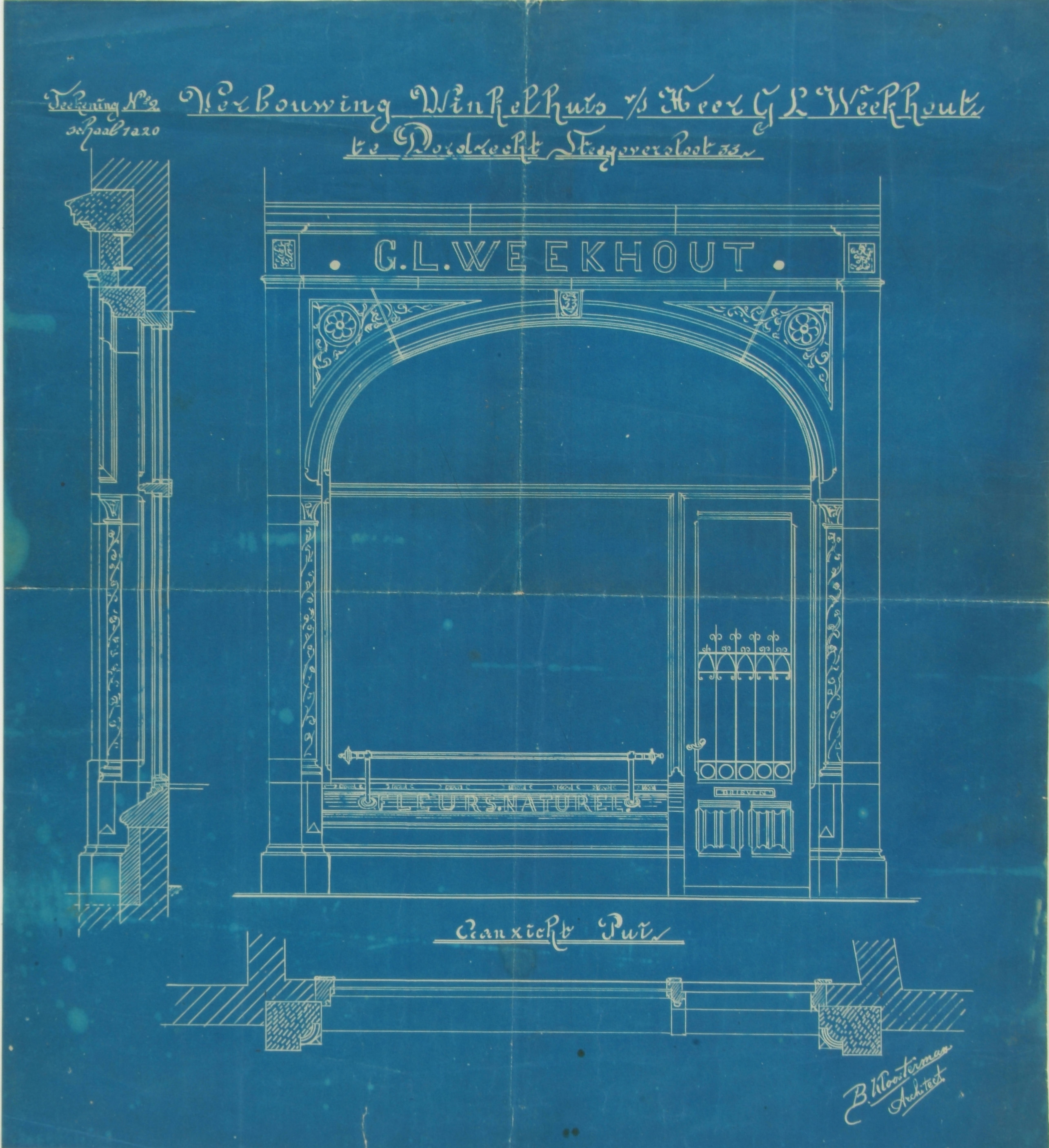 Bouwtekening voor de verbouwing van het winkelpand van de heer G.L. Weekhout aan de …