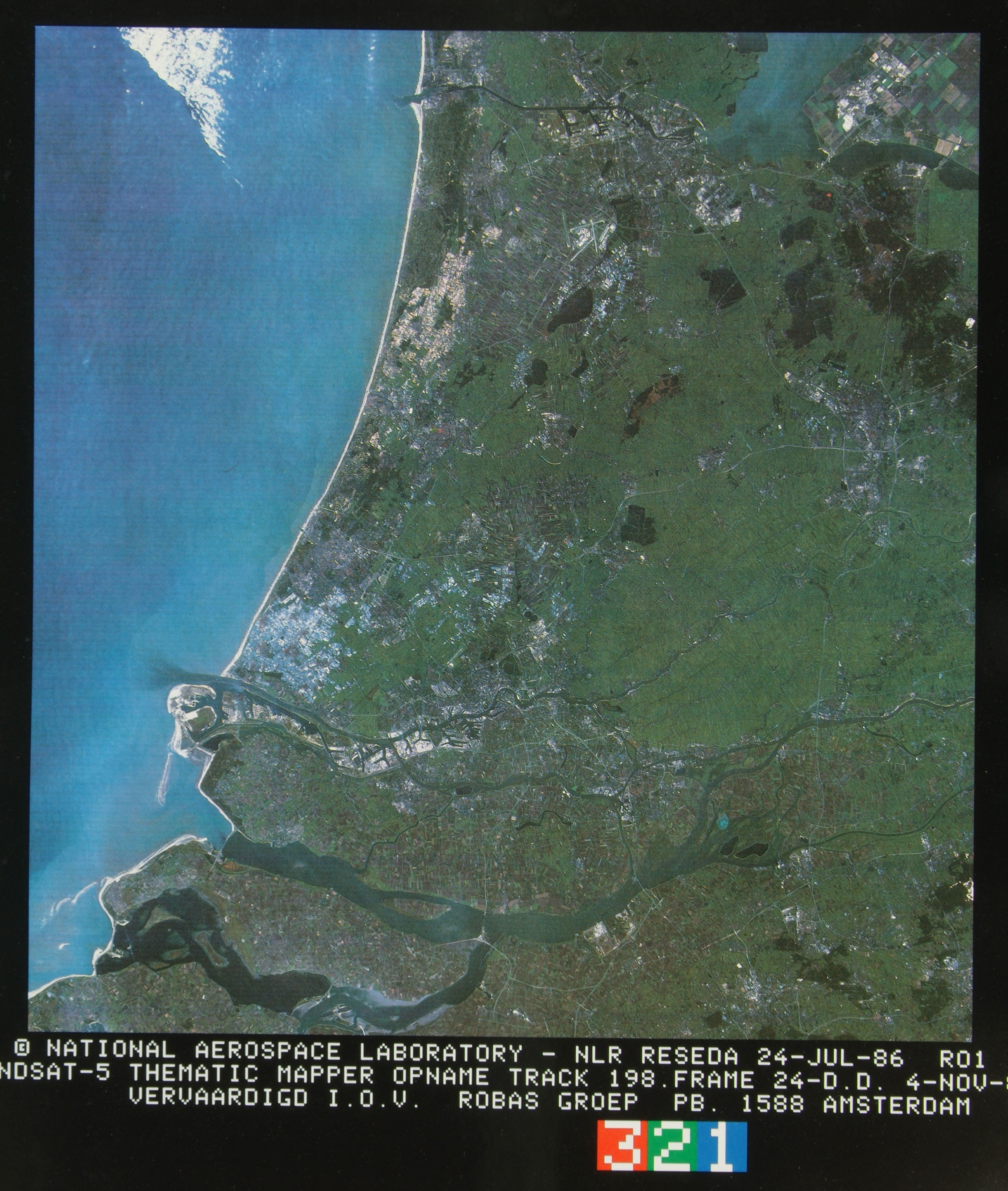 - De Landsat-5 is een ruimtesatelliet die in een vaste baan om de aarde draait en 1x per 2 maanden boven Nederland bevindt. En alleen bij onbewolkte lucht kan fotograferen. De foto is opgebouwd uit 14 miljoen beeldelementen.