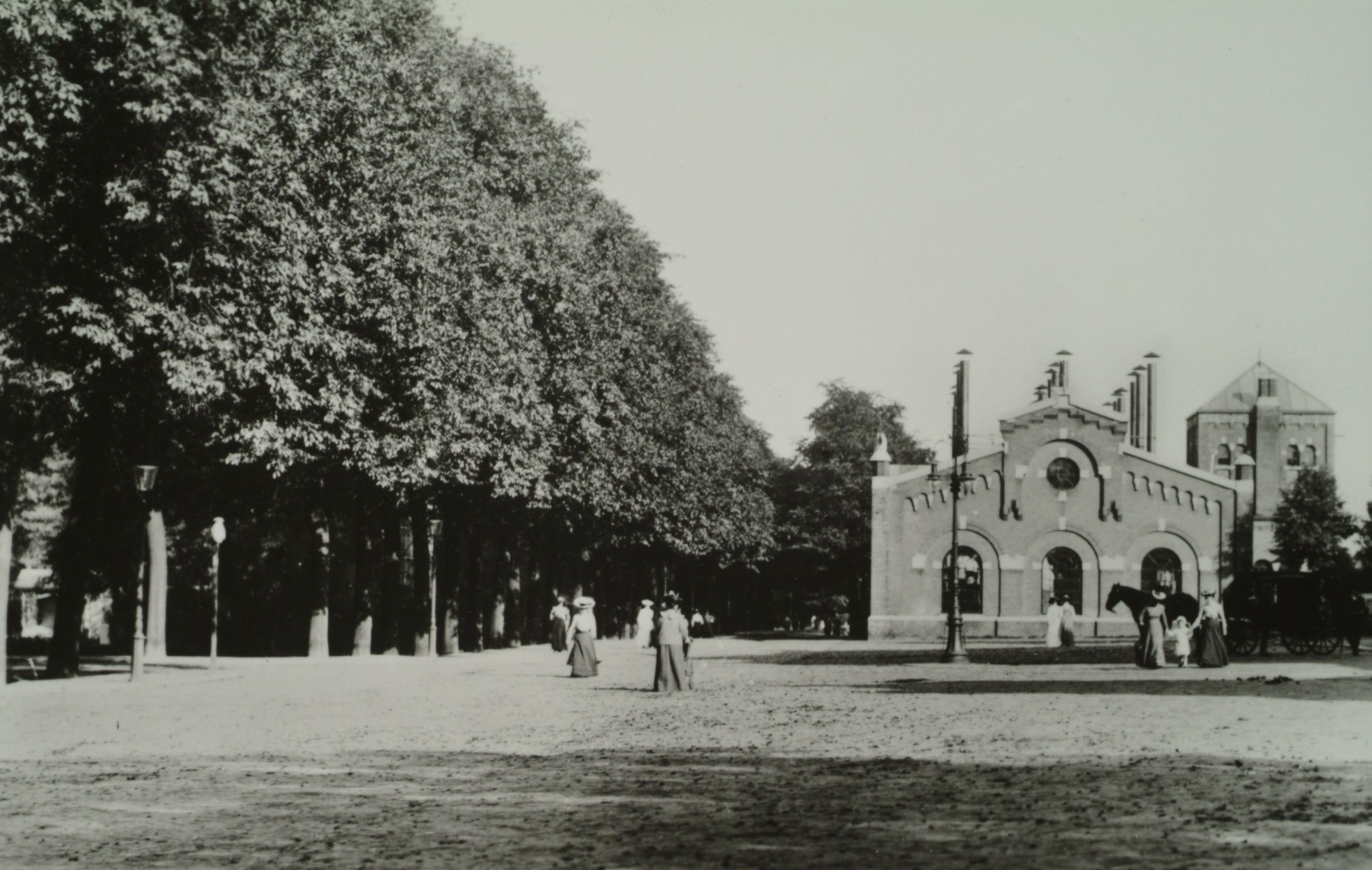 calèches / koetsen / rijtuigen locomotievenloodsen voetgangers