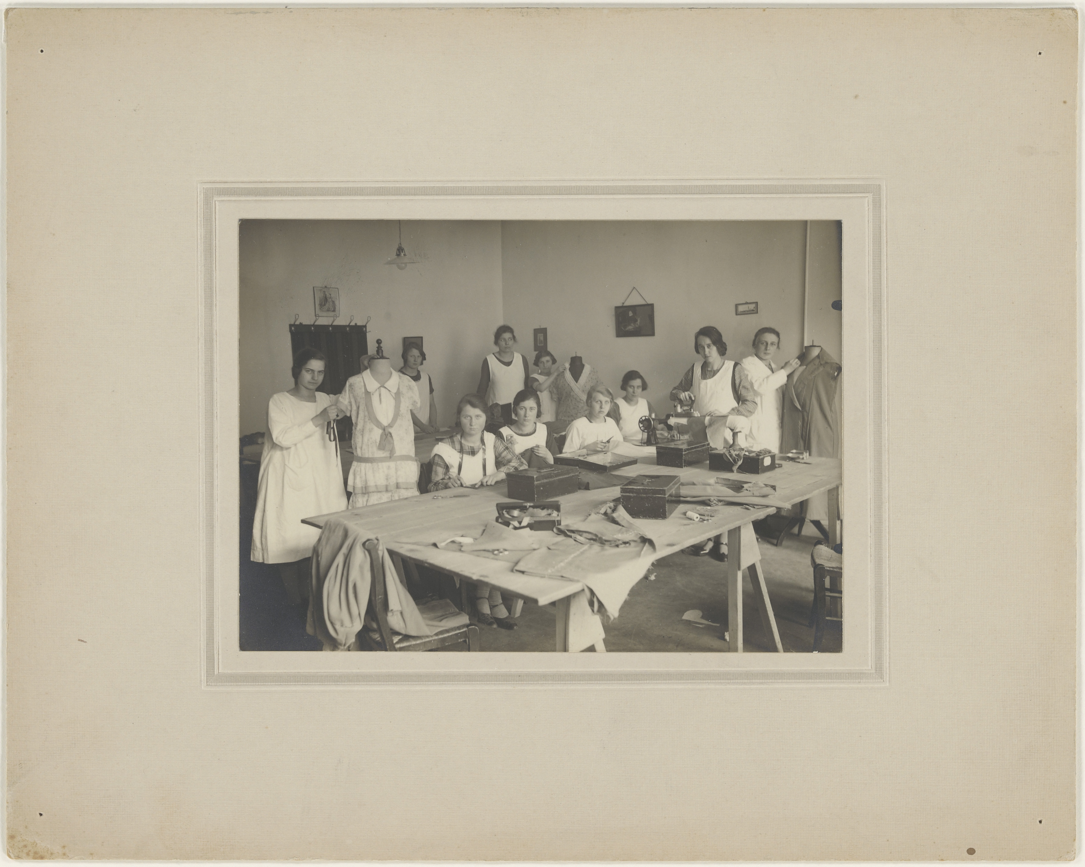 Naailes voor leerlingen van de Industrie- en Huishoudschool Doelesteyn aan het Steegoversloot.