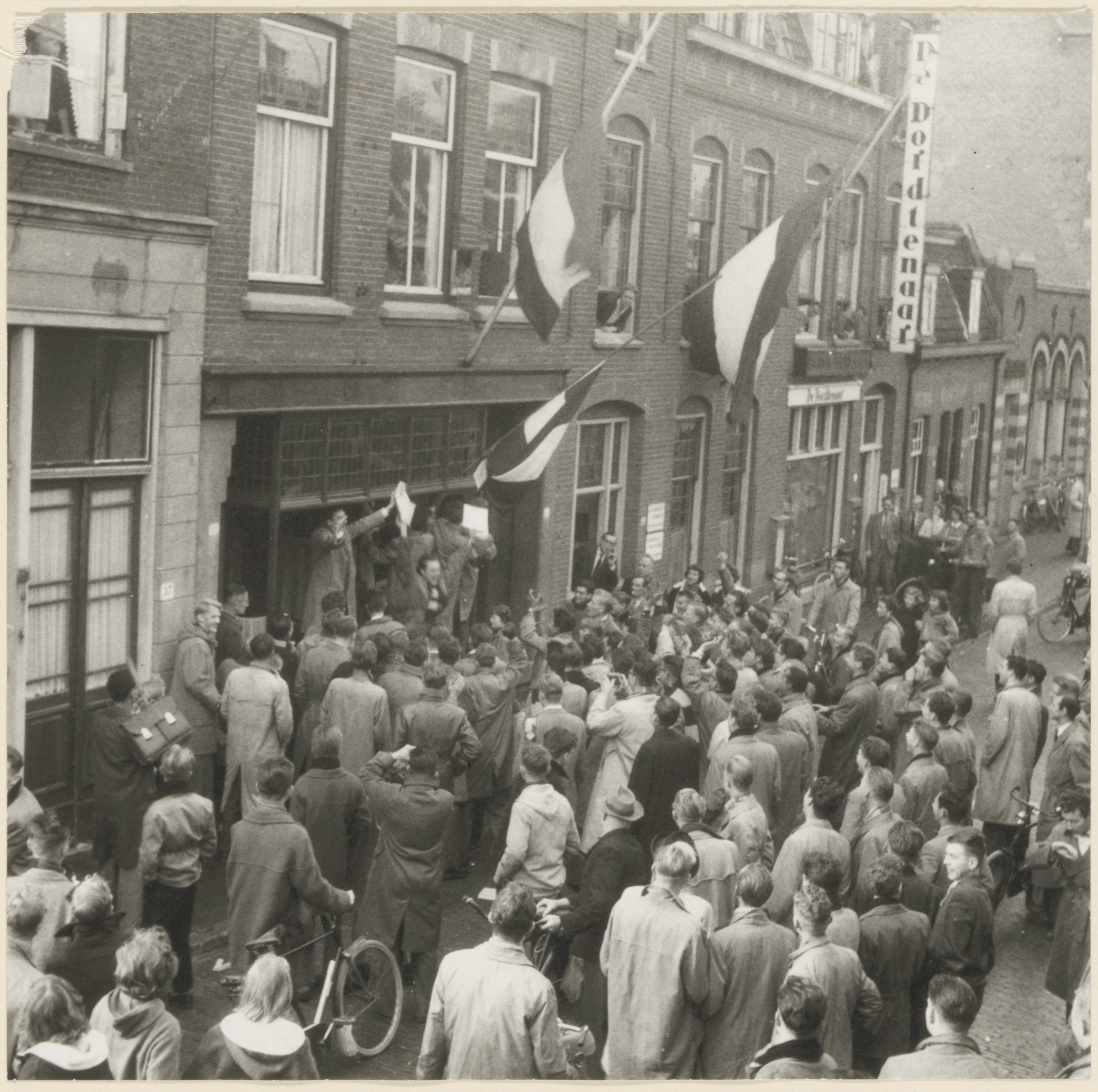 - Relletjes op het Bagijnhof bij het gebouw van het communistisch blad De Waarheid naar aanleiding van de revolutiepoging in Hongarije.