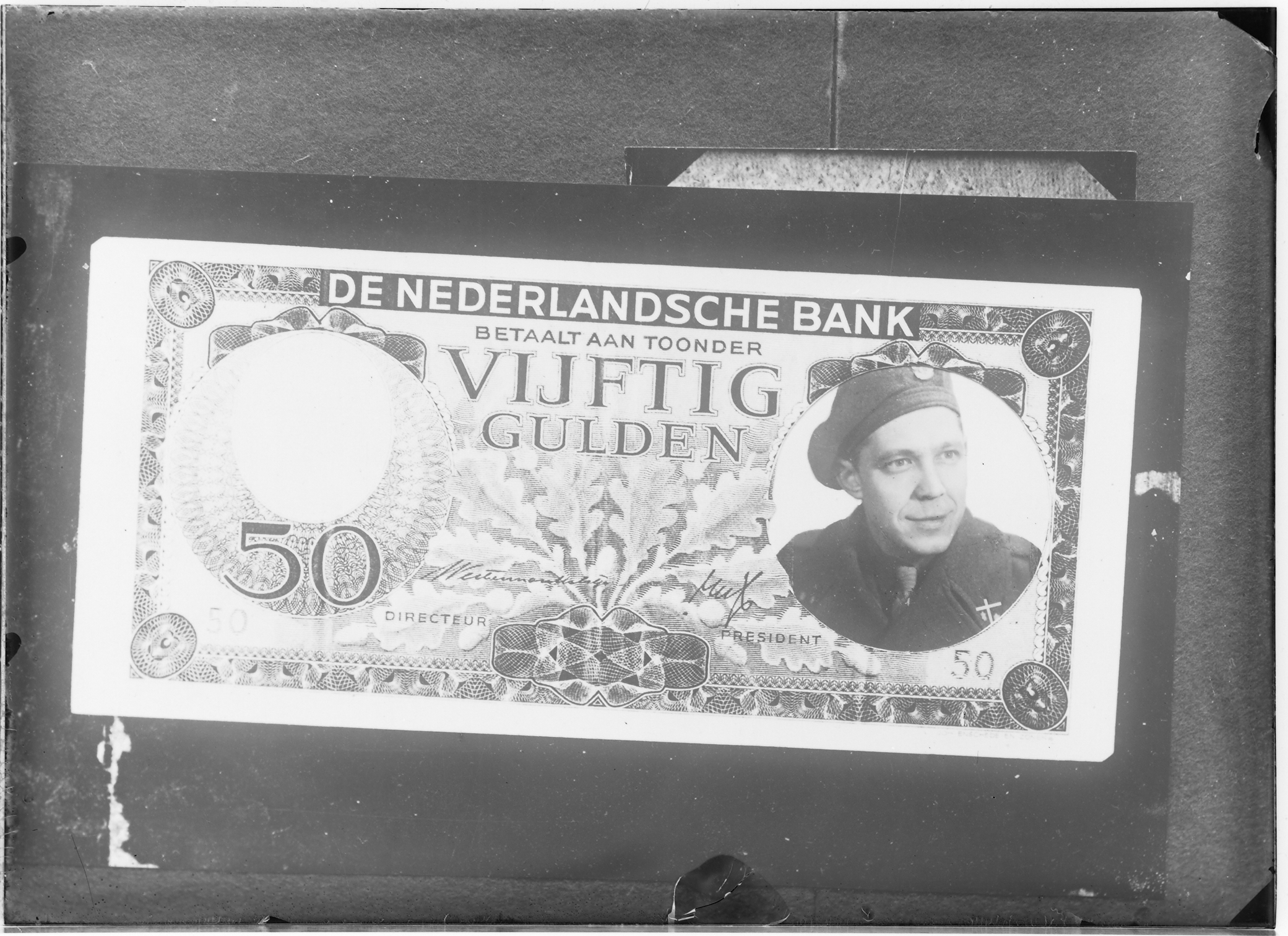 - Briefje van 50 gulden met portret van een militair erin verwerkt van de Nederlandse Bank aan de Wijnstraat