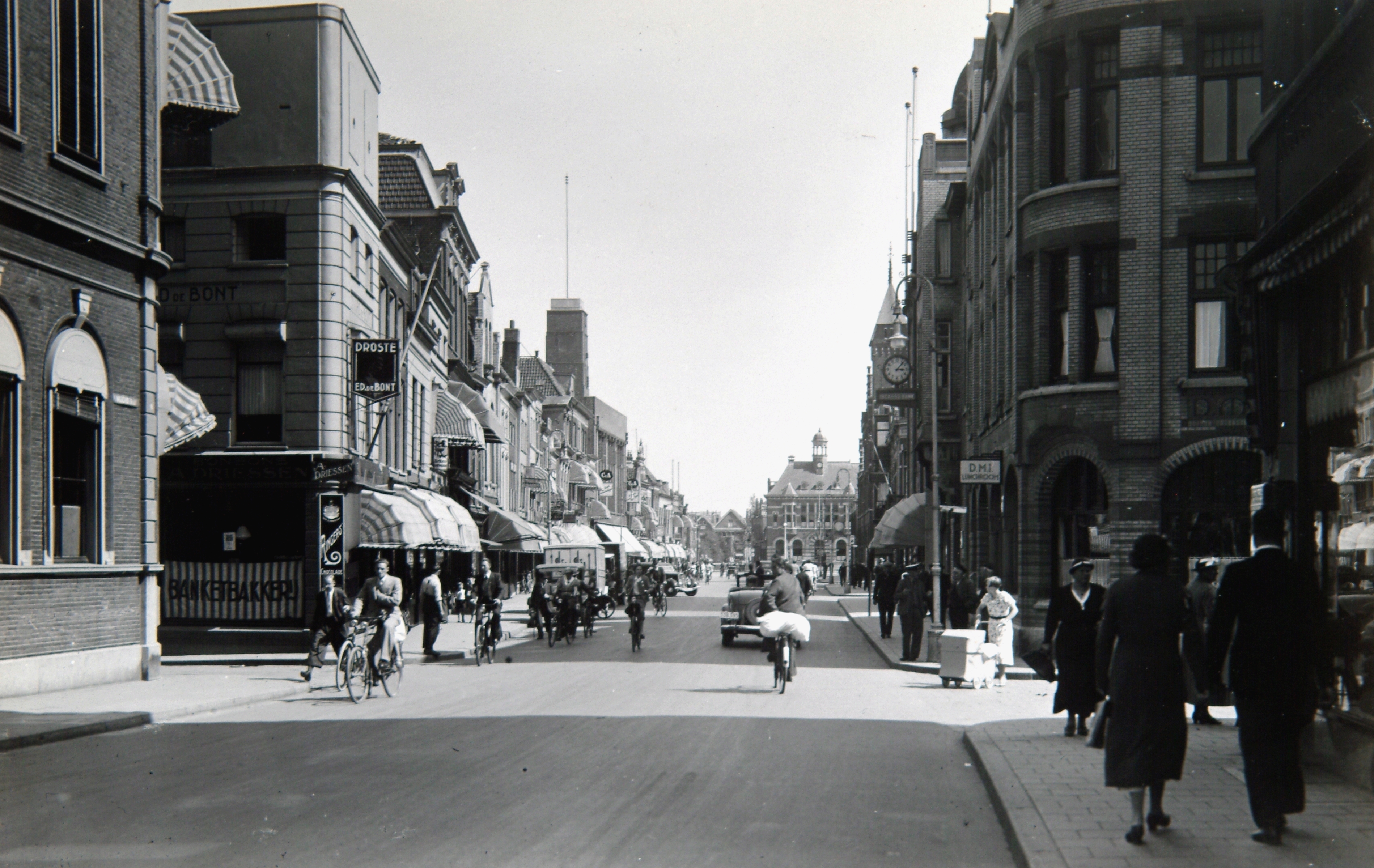 - De DMI melksalon, rechts op de hoek zal eind 1937 verdwijnen.
