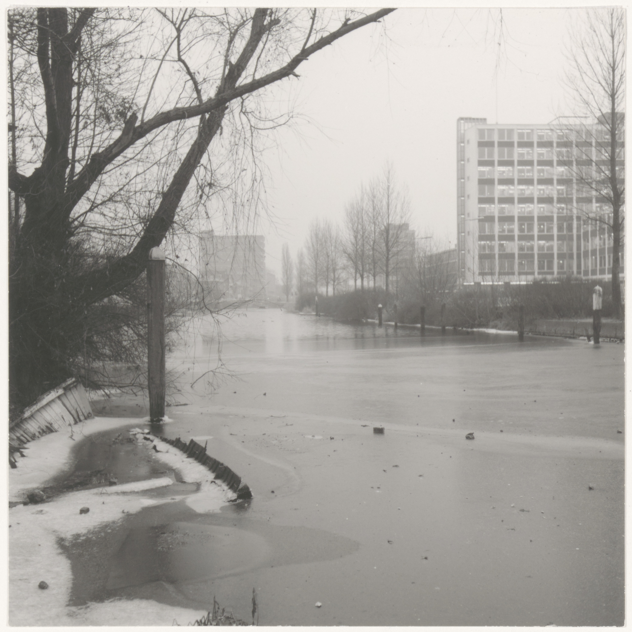 - De dichtgevroren Spuihaven vanaf de Prinsenstraat richting stadskantoor.