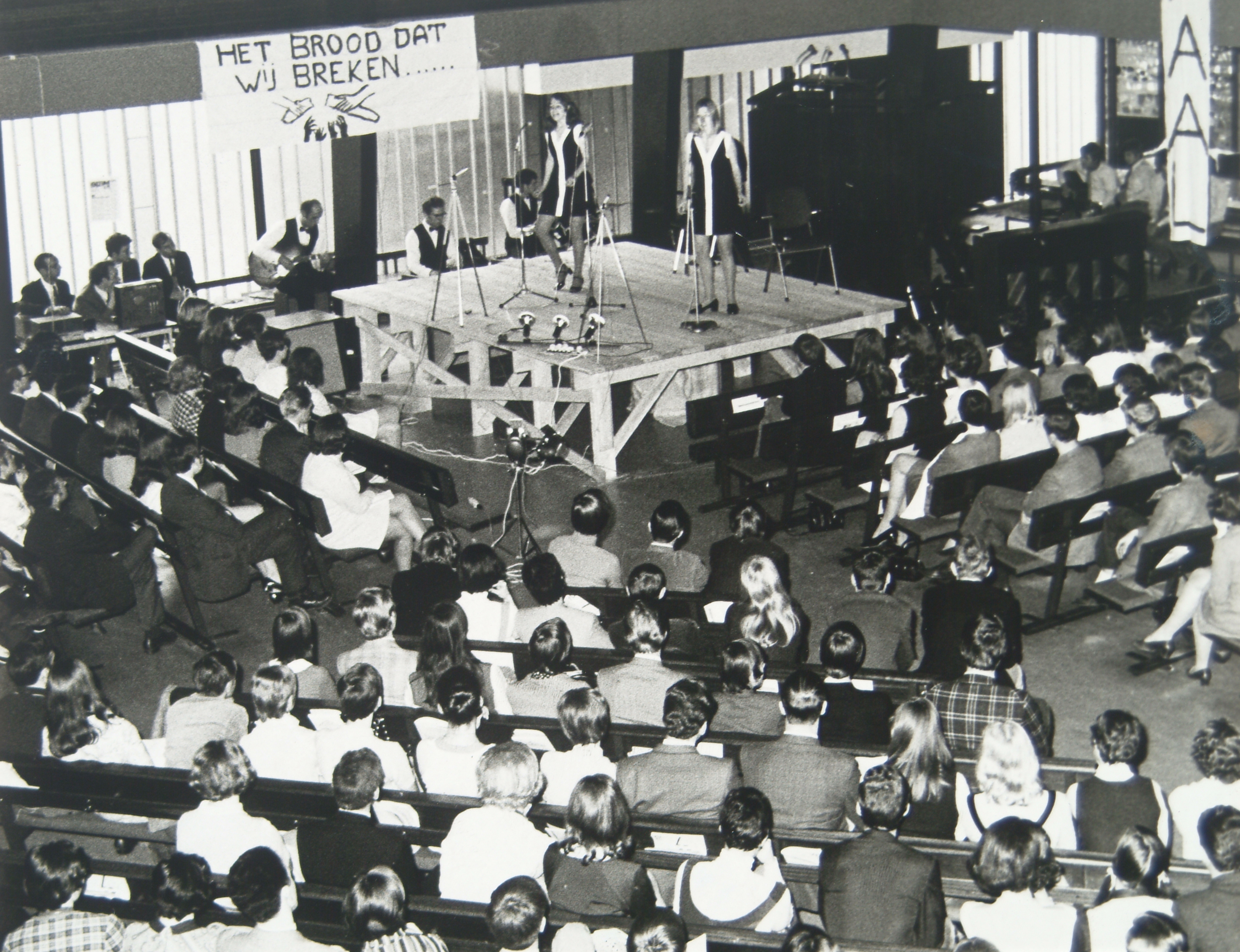 Optreden van cabaretgroep Impuls in de gereformeerde kerk te Zwijndrecht