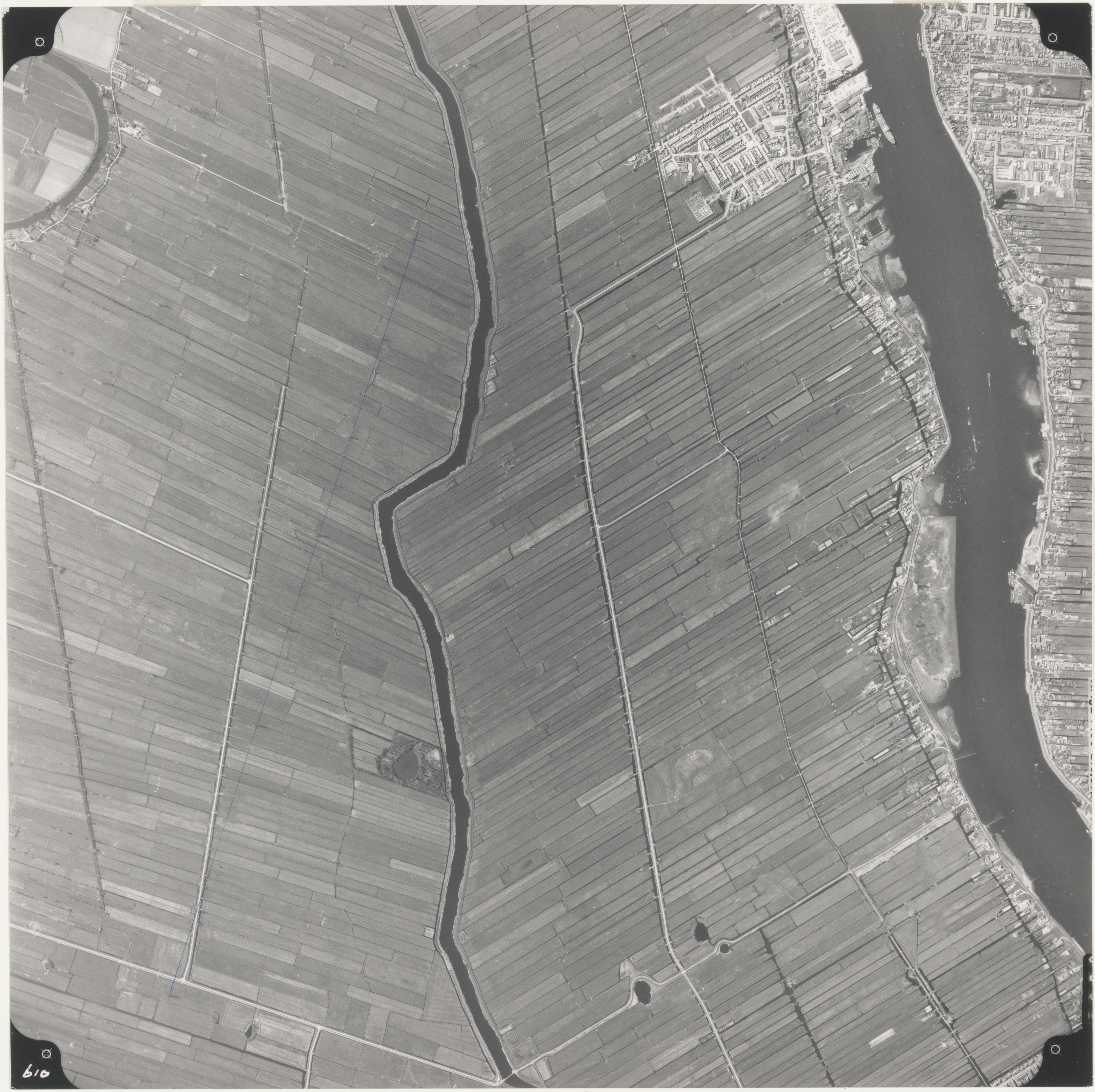 Luchtfoto Alblasserwaard. Rechts boven Lekkerkerk met de Lek en Nieuw Lekkerland links ervan. Midden onder naar midden boven Groote of Achterwaterschap. Links boven stukje van de Grote Nes polder.. Links onder Zijdeweg. Midden onder naar boven N480 gezien naar het westen.