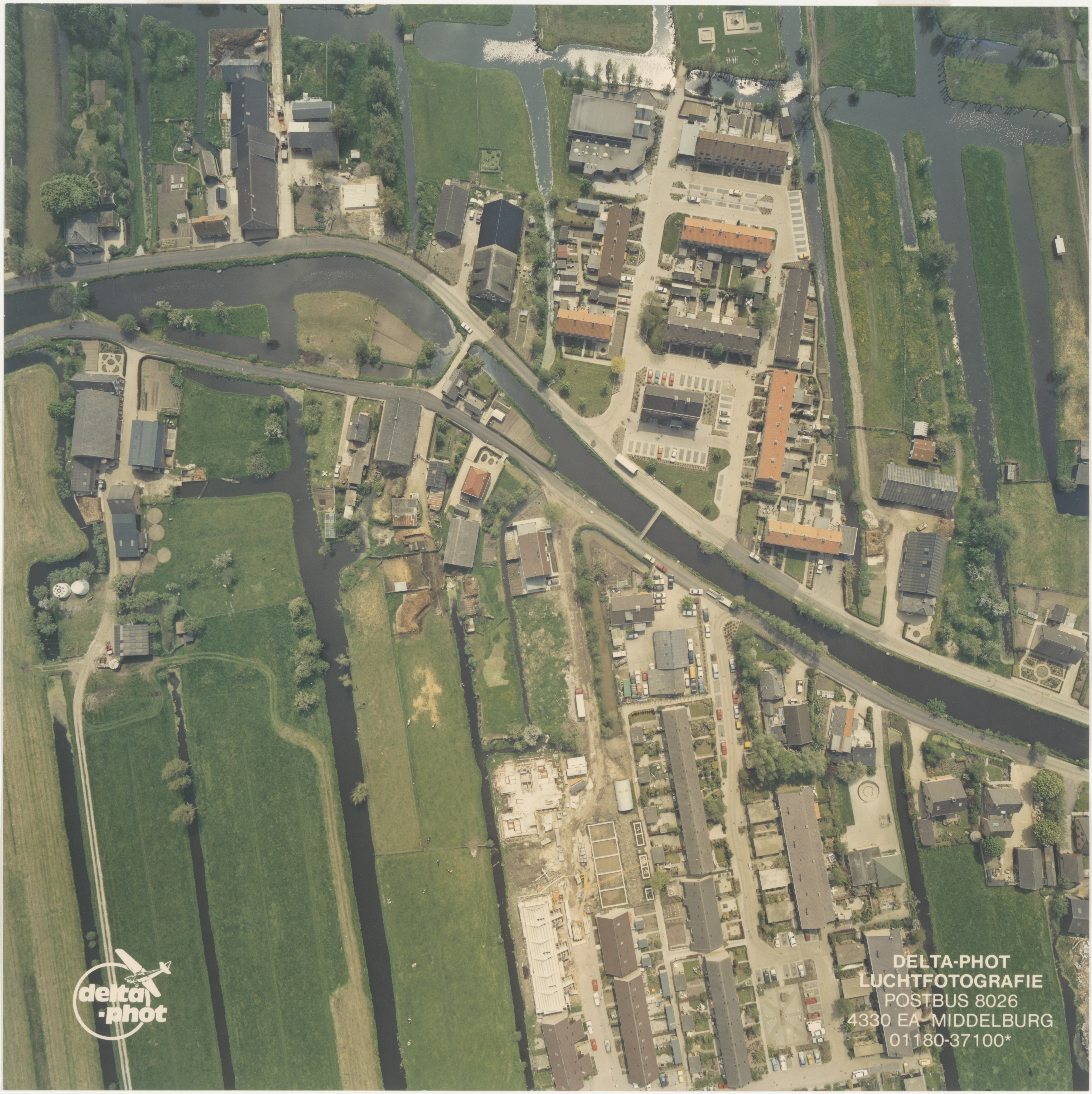 Luchtfoto Goudriaan. Midden rechts naar links Zuid en Noordzijde. Midden naar boven Raadhuisstraat gezien in zuidelijke richting.