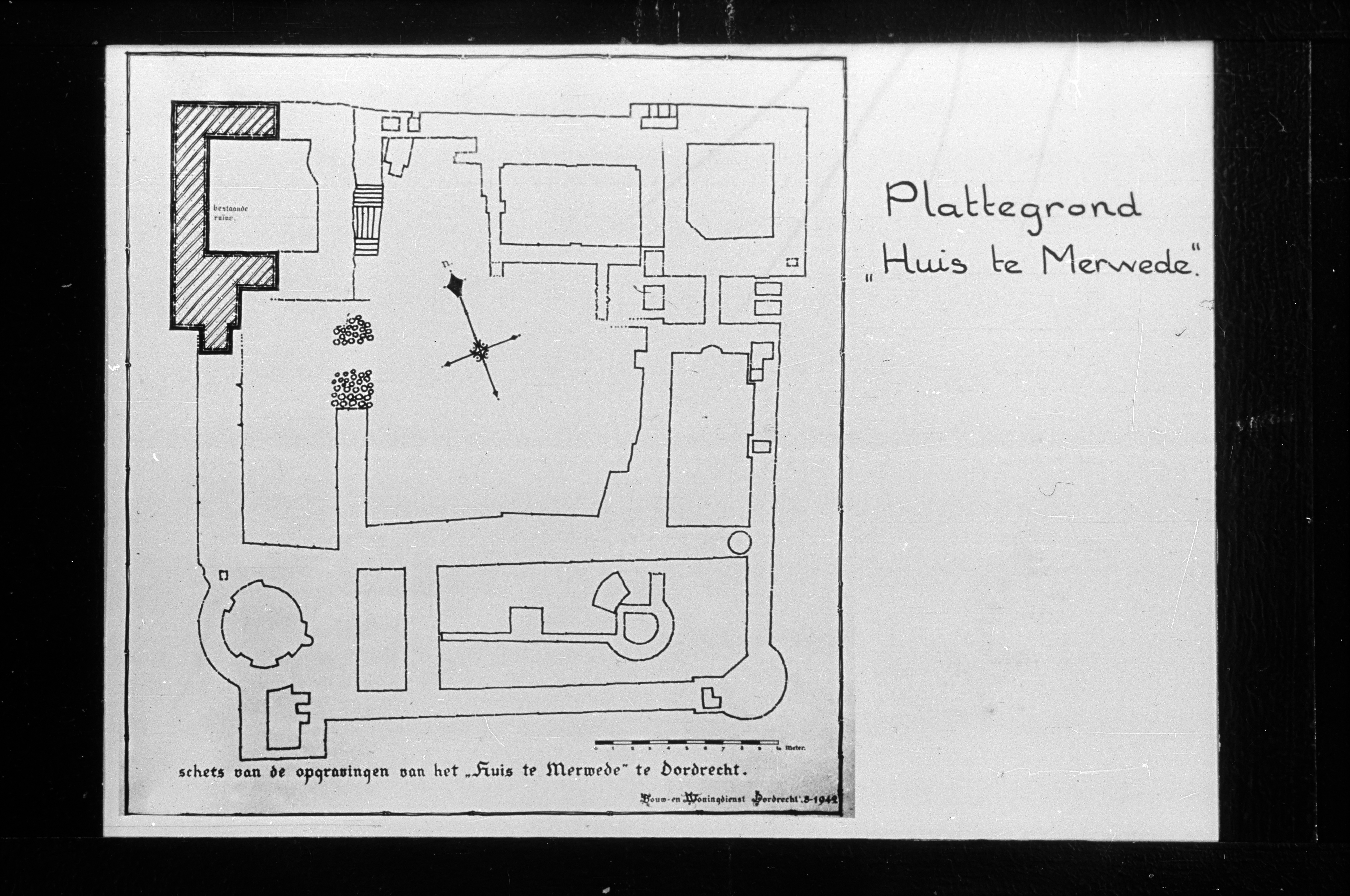 - Schets van opgravingen van Huis te Merwede, vervaardigd door Bouw- en Woningdienst in 1942.