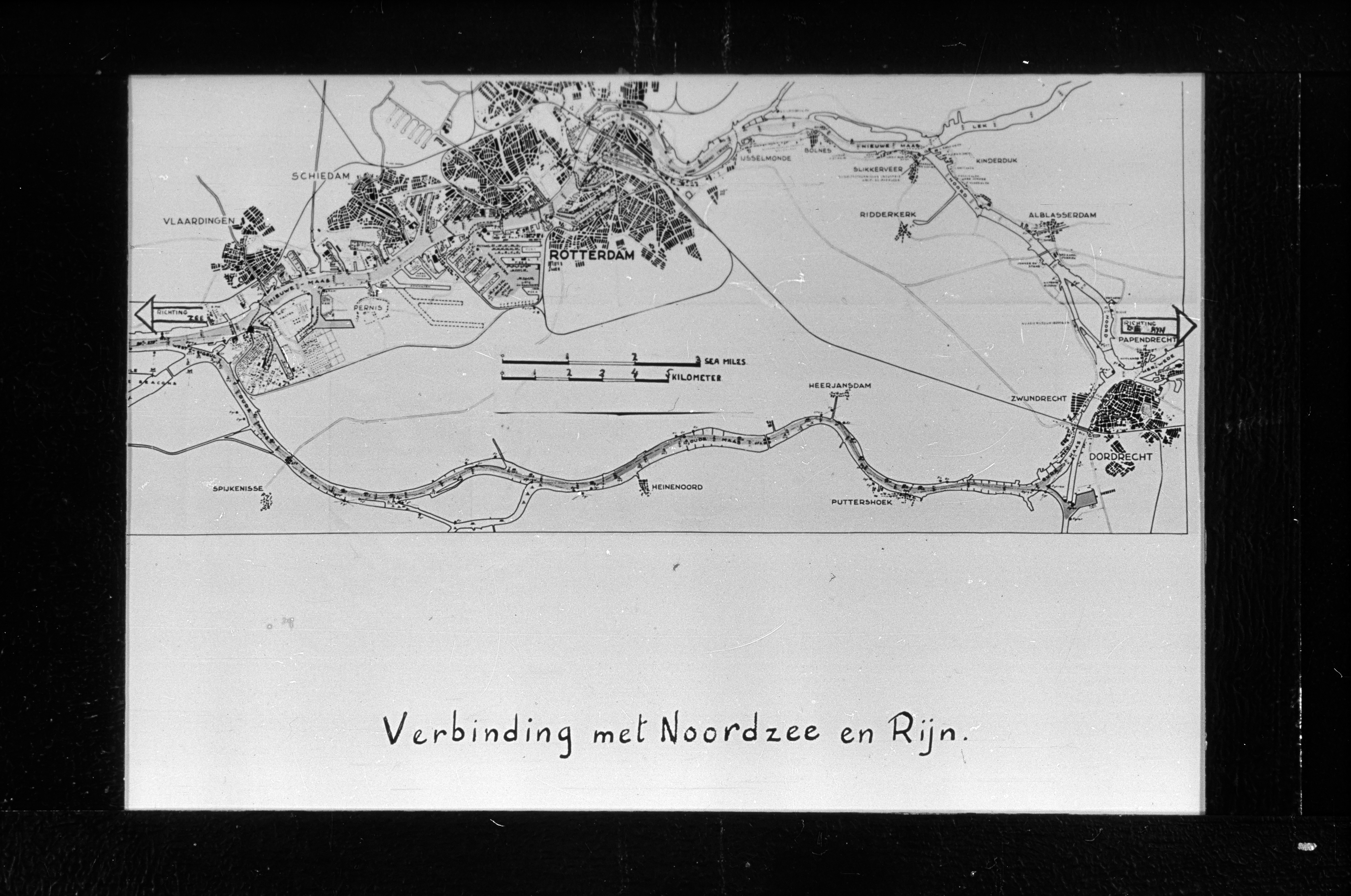 Kaart met de belangrijkste spoor-, verkeers- en waterwegen tussen Dordrecht en de …