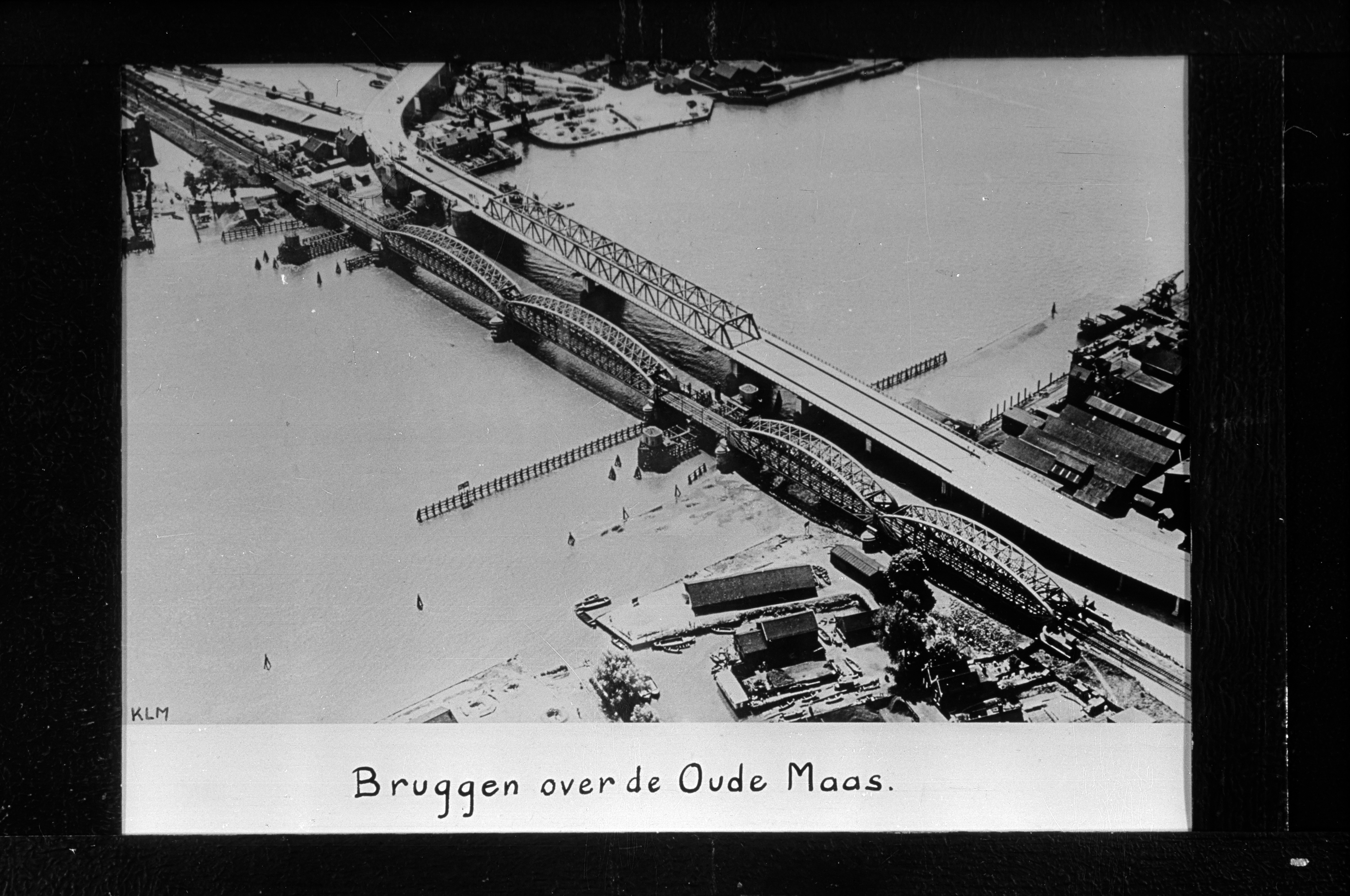 - Spoorbrug en verkeersbrug over de Oude Maas tussen Zwijndrecht (onder) en Dordrecht.