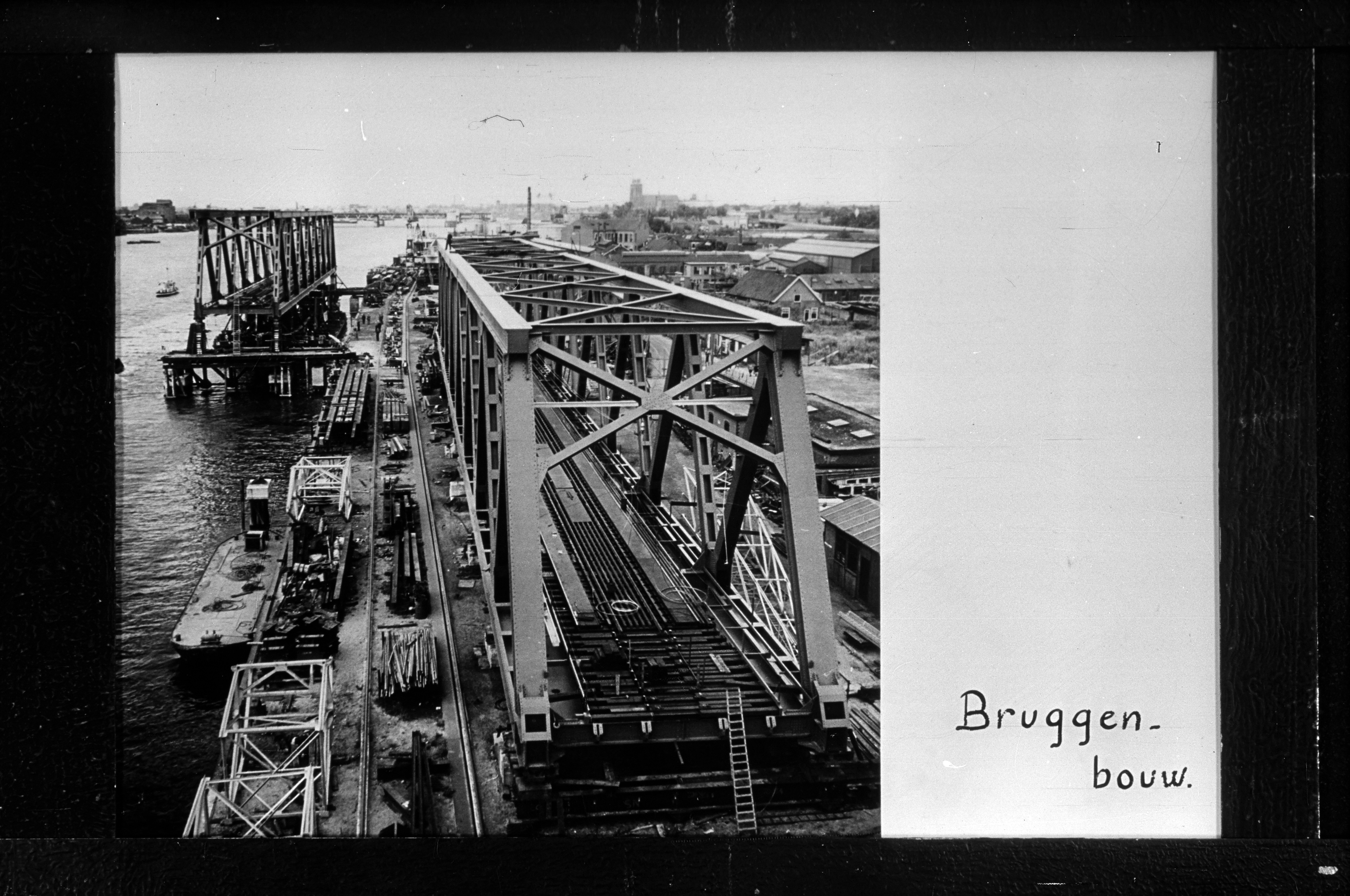 Bouw van de vervangende dubbelsporige brugdelen van de Moerdijkbrug bij Penn & Bauduin …