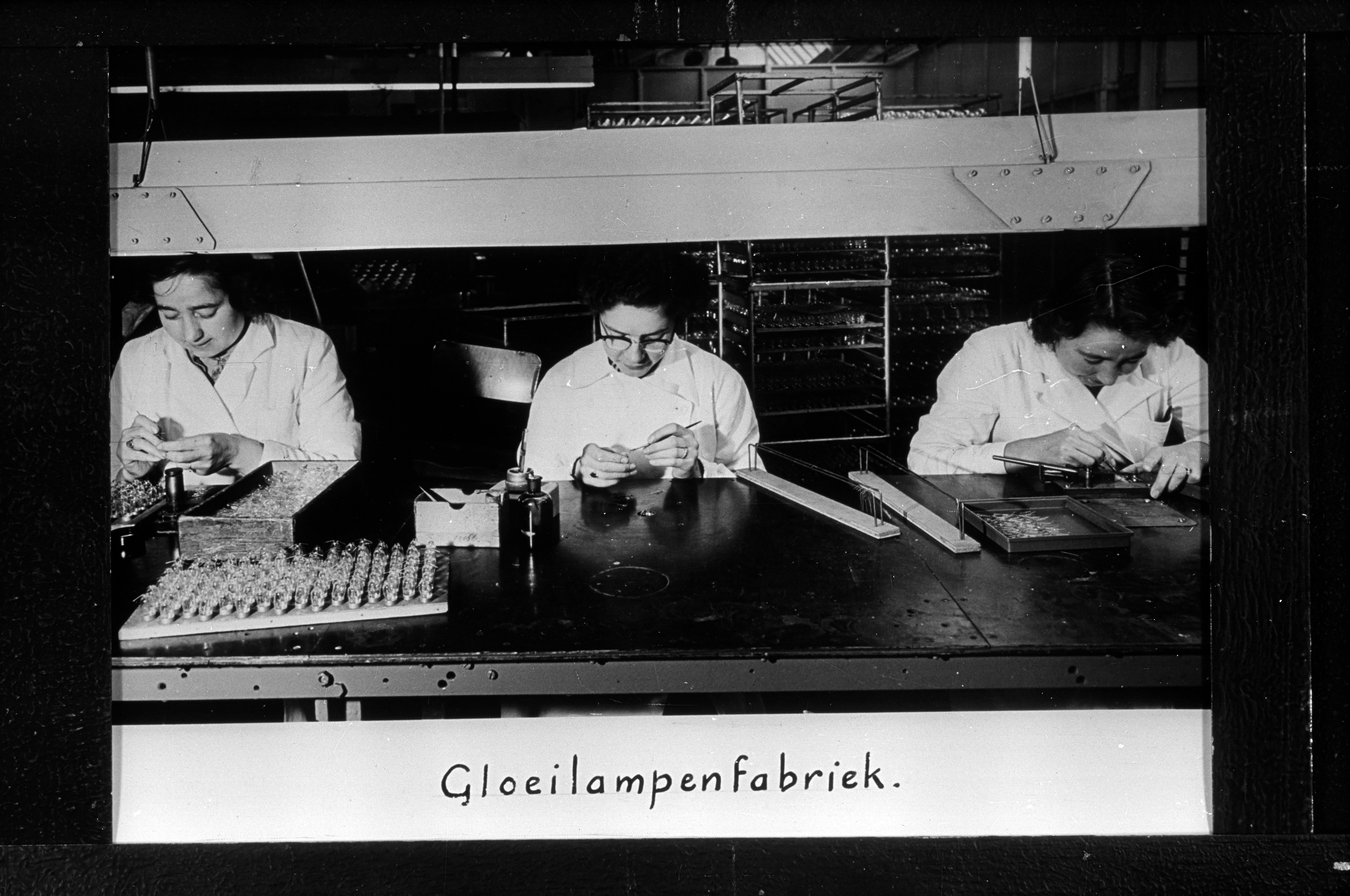 - Arbeiders bij Dordtsche Metaalindustrie Johan de Witt (Philips) aan de Kerkeplaat.