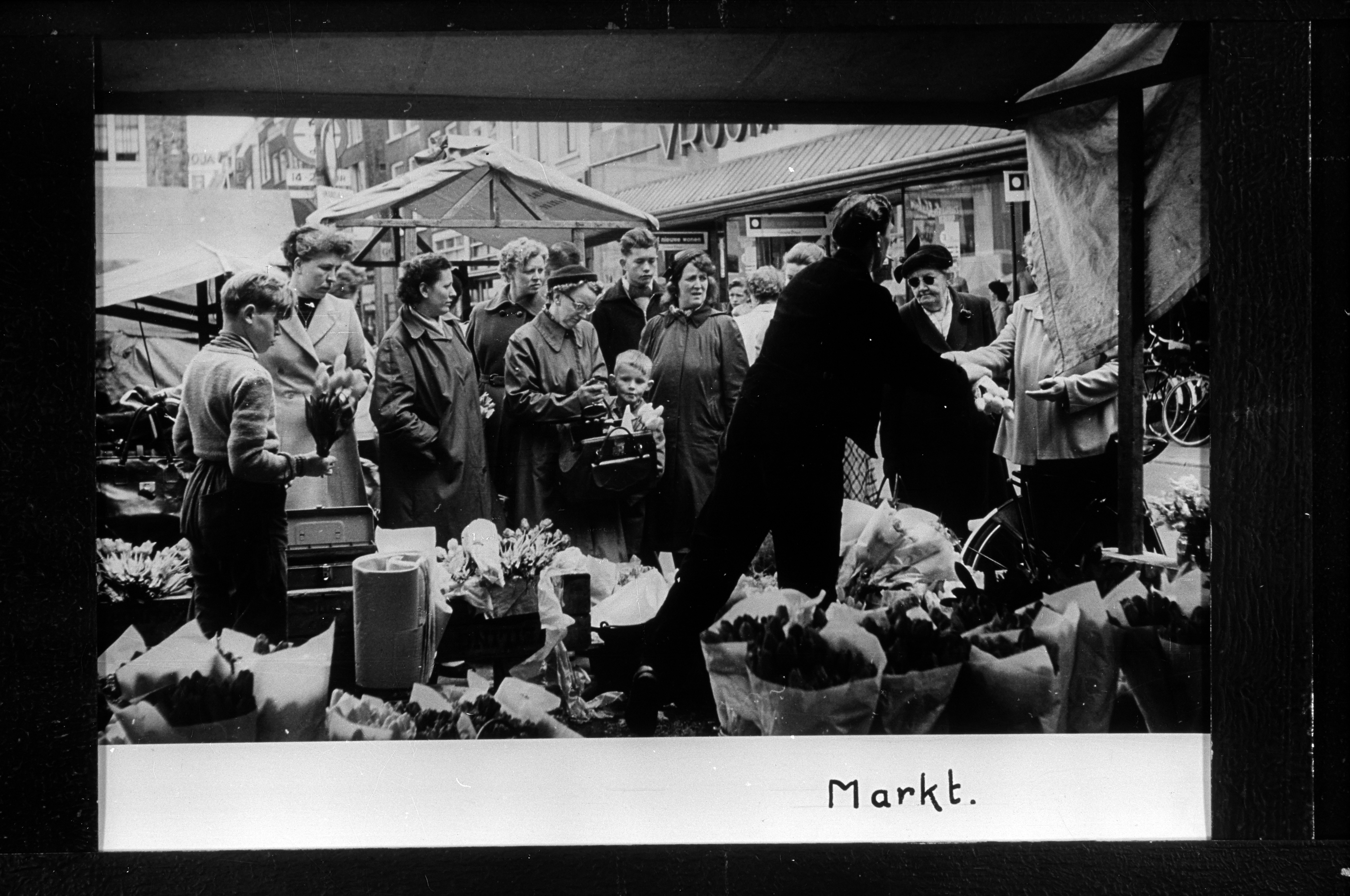 - Markt op het Scheffersplein voor de ingang van V&D.