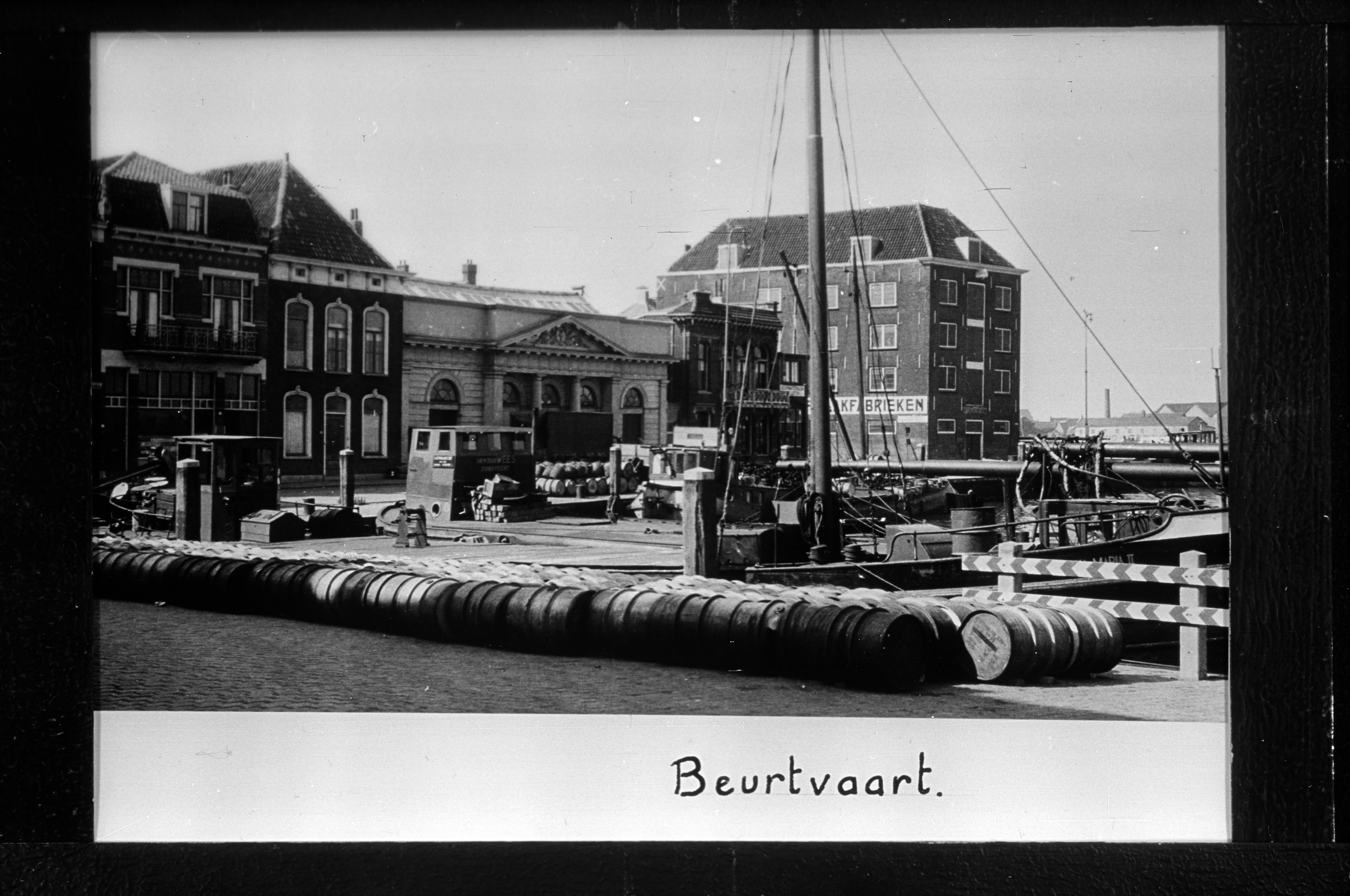 Bomkade en Bomhaven. In het midden de Korenbeurs, het hoge gebouw rechts is pakhuis Vredenburg.