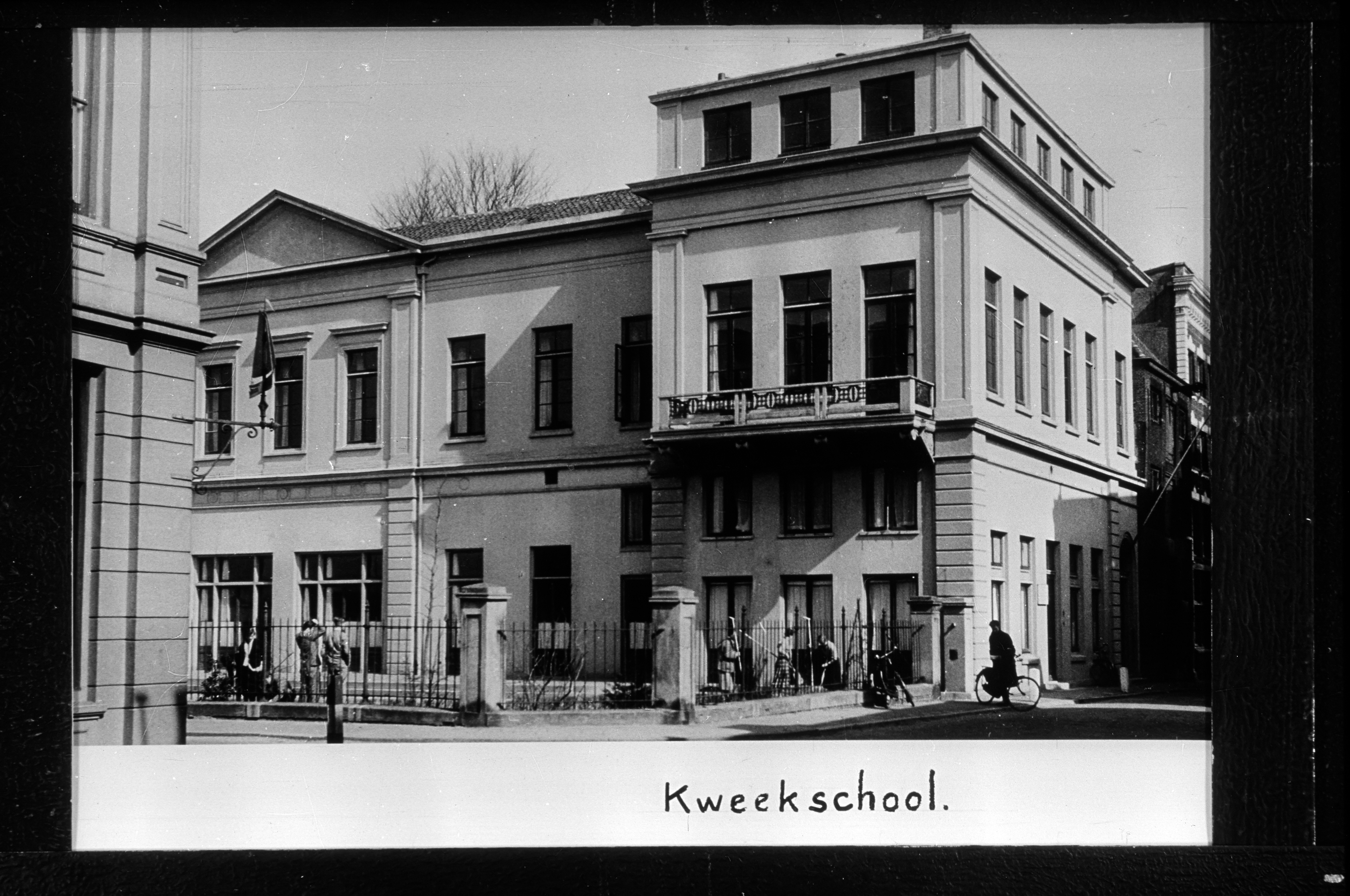 Gemeentelijke Kweekschool op de hoek Binnen Walevest/Veerstraat.