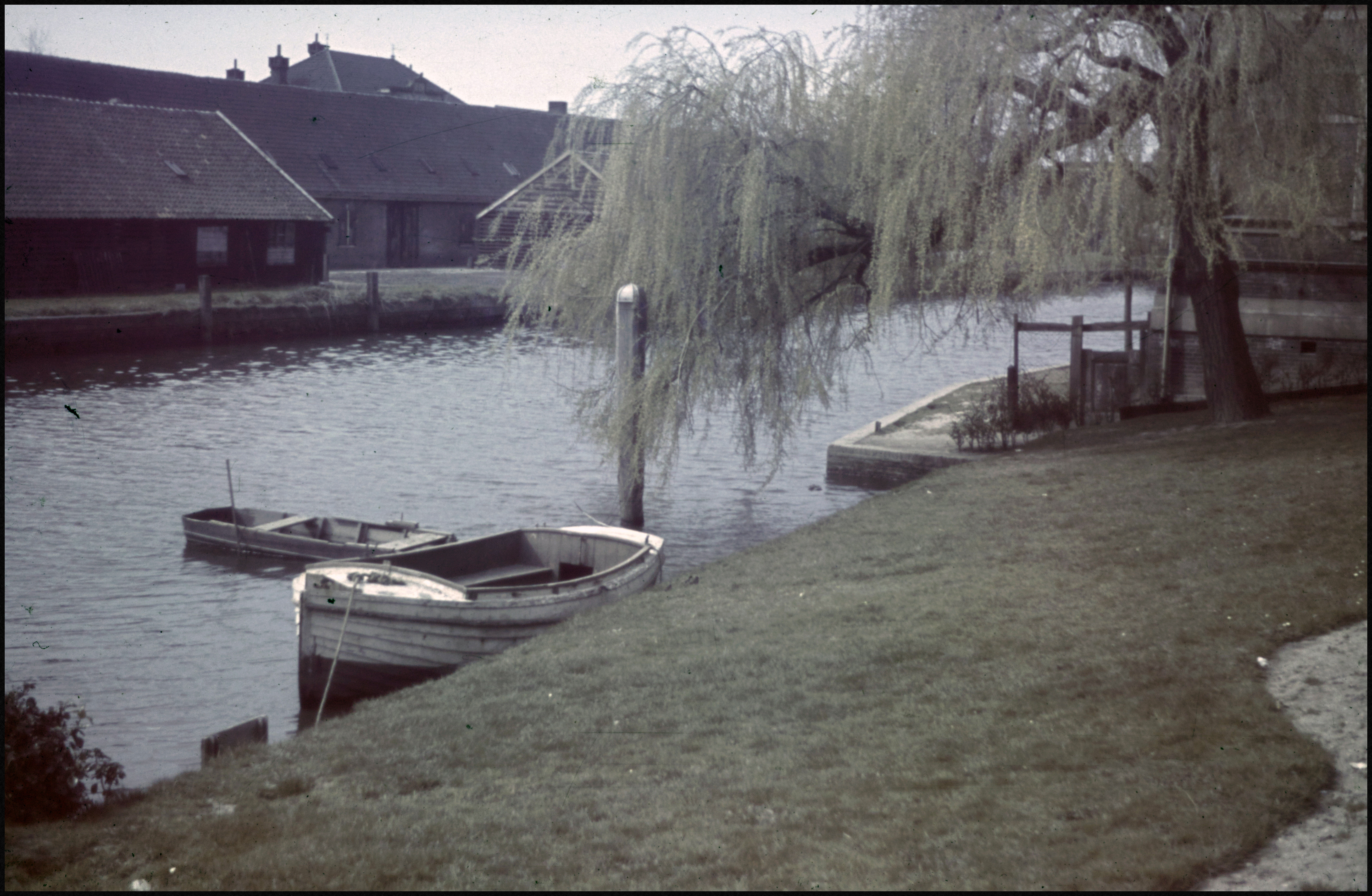 De Spuihaven bij het badhuis op de Vest (rechts). Uitzicht op het rijksmagazijn (de lange loods) aan de Cornelis de Wittstraat.